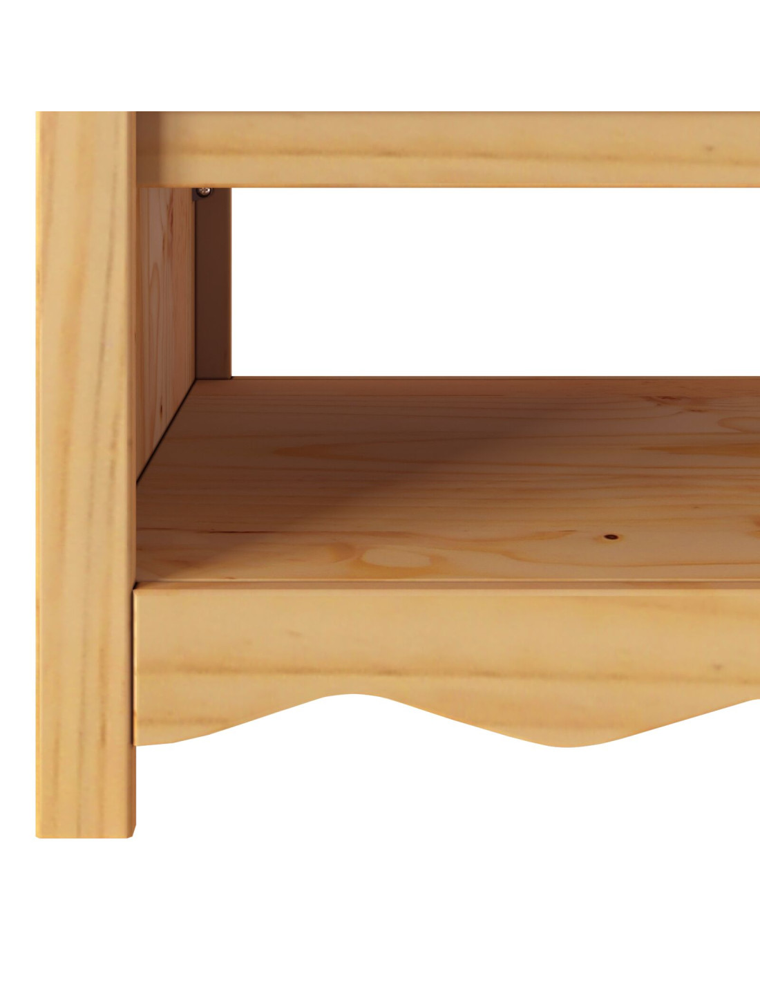Questo tavolo da caffè tradizionale è un bellissimo punto focale per qualsiasi soggiorno, unendo funzionalità e stile. Il suo design moderno in legno massello di pino porta semplicità ed eleganza al tuo spazio. Perfetto per migliorare l'aspetto del soggiorno, combina praticità con linee pulite per un fascino minimalista. Offre un posto comodo per sistemare bevande, decorazioni o riviste per incontri intimi o sociali.