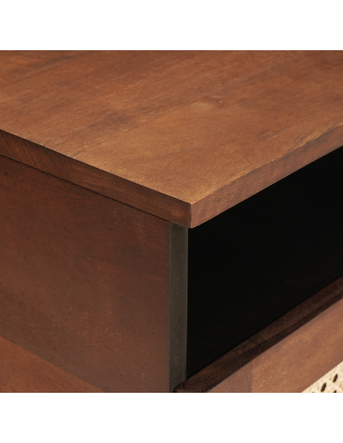 - Materiali naturali: Questo tavolino da caffè in legno massello di mango ha una venatura bellissima che dà calore e carattere al soggiorno. I componenti in legno ingegnerizzato completano l'aspetto naturale, offrendo stabilità e una finitura uniforme.