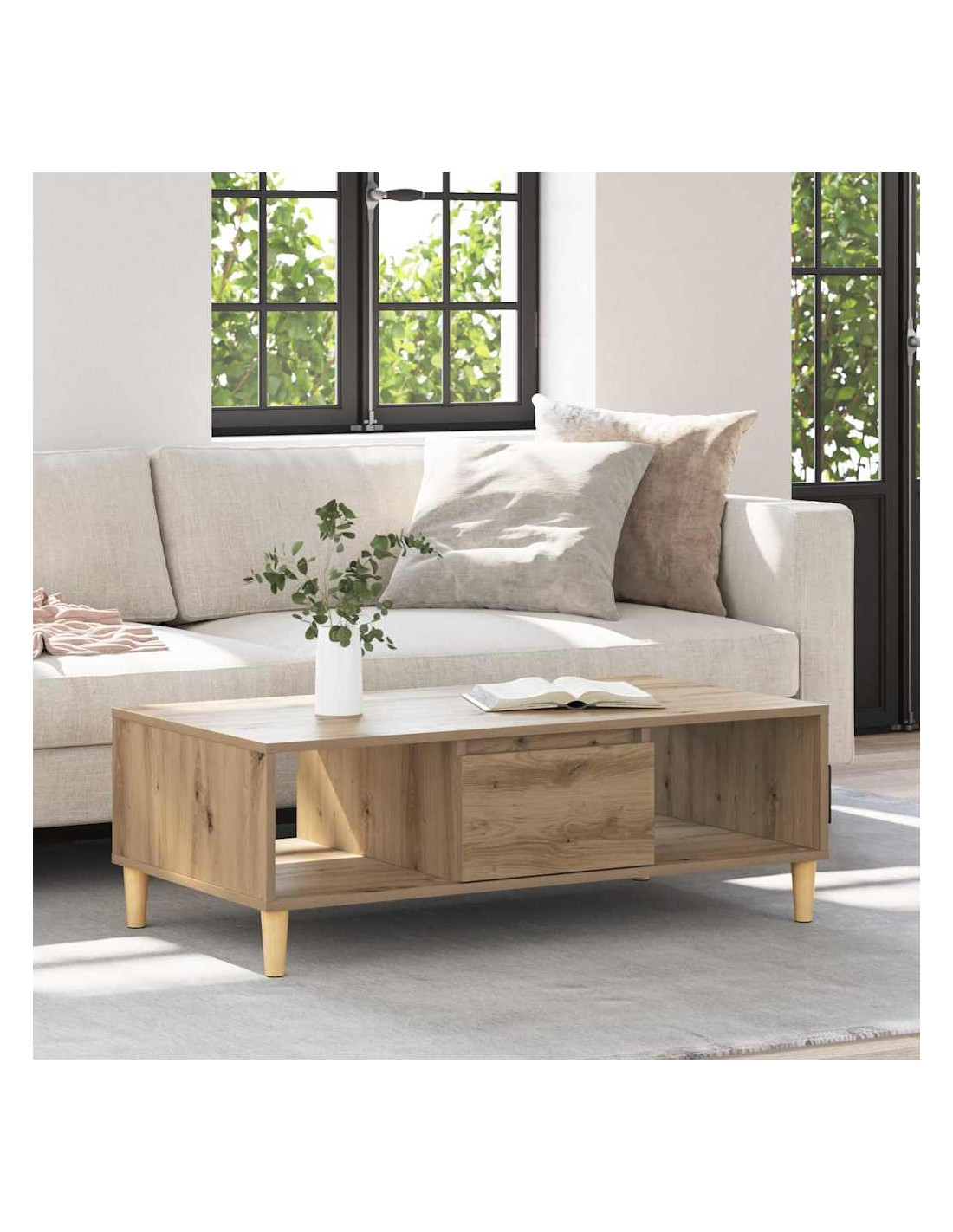 Questo tavolino da caffè moderno è un'aggiunta stilosa per qualsiasi soggiorno, combinando perfettamente funzionalità e design accattivante. Con linee pulite e uno stile minimalista, si inserisce bene nell'estetica contemporanea, rendendolo perfetto per chiacchierate e uso quotidiano. È fatto principalmente di legno ingegnerizzato, per garantire robustezza e durata, offrendo una base fidata per bevande, riviste e decorazioni. Ideale per chi ha bisogno di un mobile versatile per momenti di relax o piccole pause caffè.