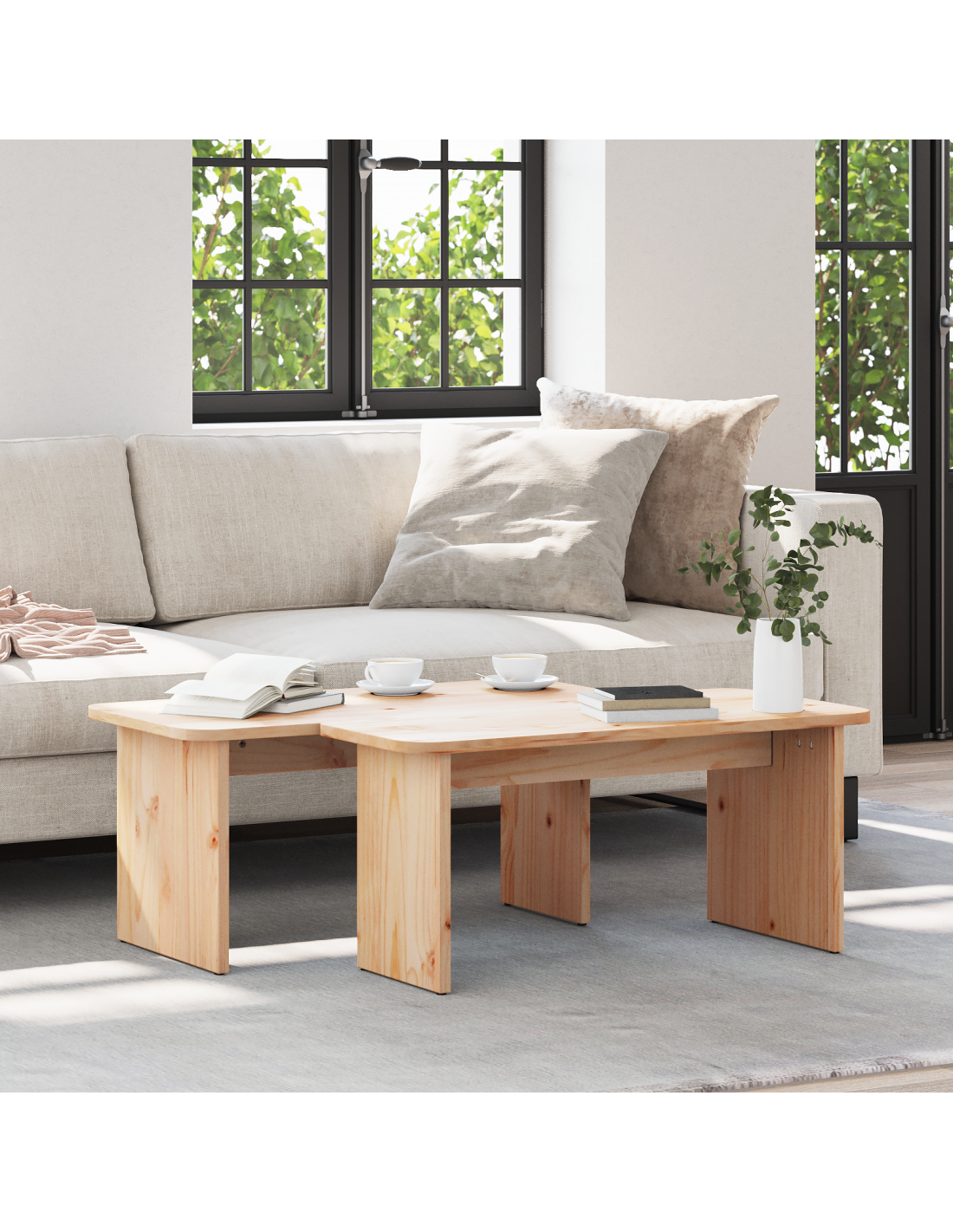 Questo set di tavolini in pino rustico porta un'estetica naturale e robusta nel tuo soggiorno. Con la sua struttura in legno massello di pino rotondo, riesce a unire forza e bellezza, diventando un pezzo centrale in qualsiasi ambiente. Ideale per appoggiare bevande, decorazioni o un libro, trasforma lo spazio in un luogo caldo e accogliente per riunioni di famiglia o pomeriggi tranquilli.