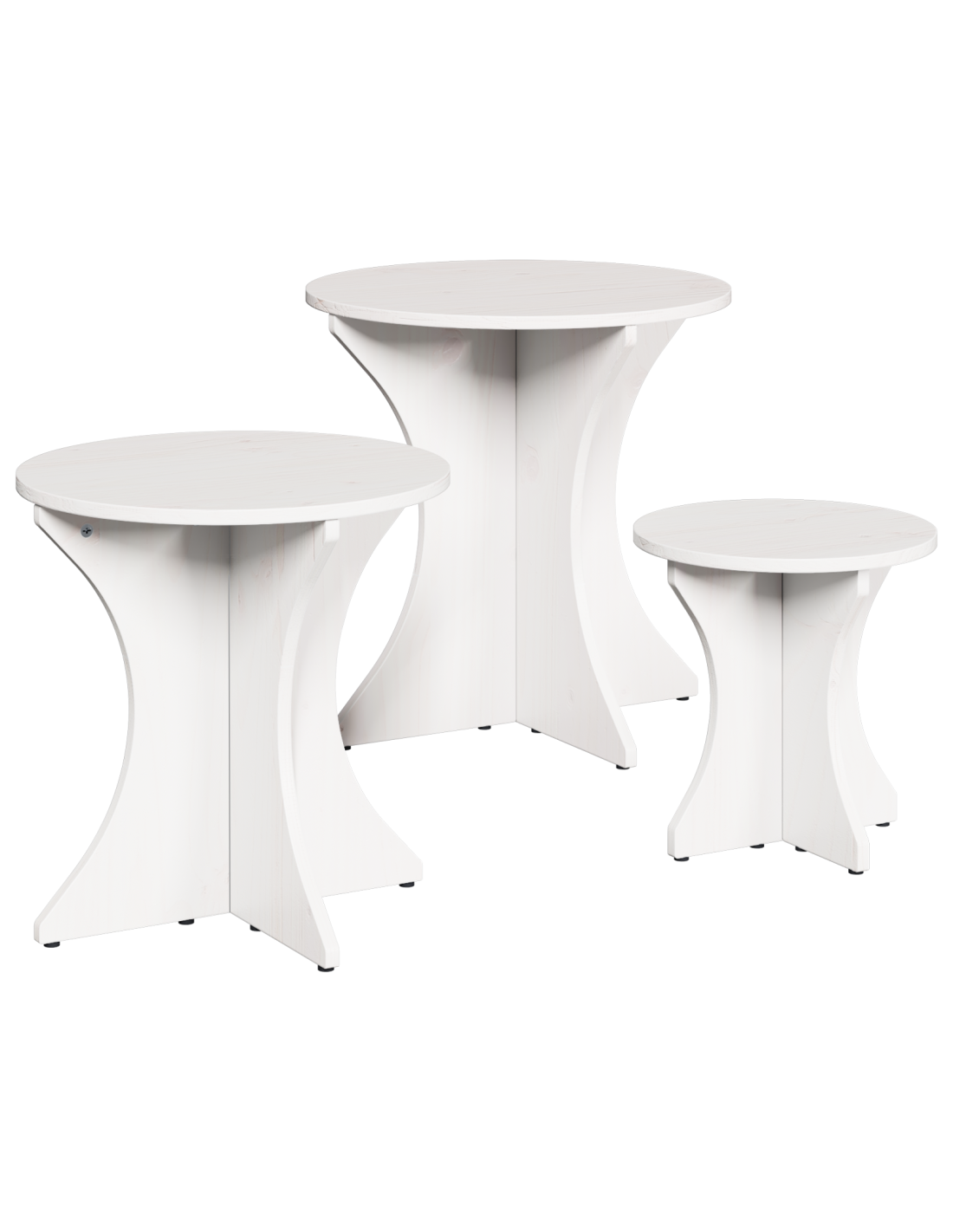 - Set da tre pezzi: Arriva come un set di tre tavolini impilabili, adattandosi senza problemi a diversi spazi e offrendo tanto comfort e versatilità. I diversi formati di ciascun tavolo si incastrano perfettamente, permettendoti di sfruttare lo spazio al meglio senza rinunciare a stile e funzionalità.