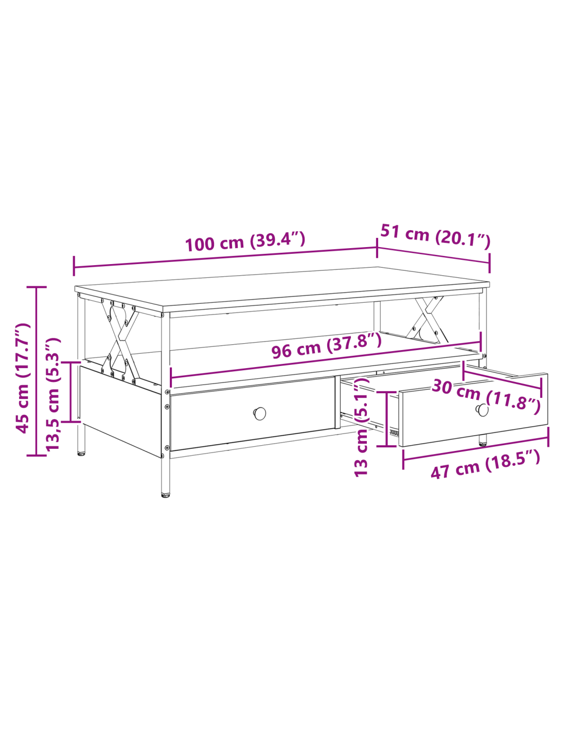 - Dimensioni complessive: 100 x 51 x 45 cm (L x P x A)