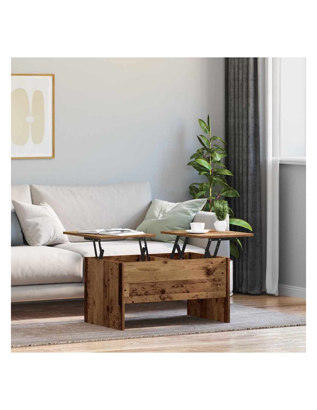 - Materiali: Completamente in legno ingegnerizzato, questo tavolino è resistente all'usura quotidiana. I materiali scelti assicurano stabilità e una finitura gradevole che migliora l'estetica del soggiorno mantenendo un utilizzo pratico.