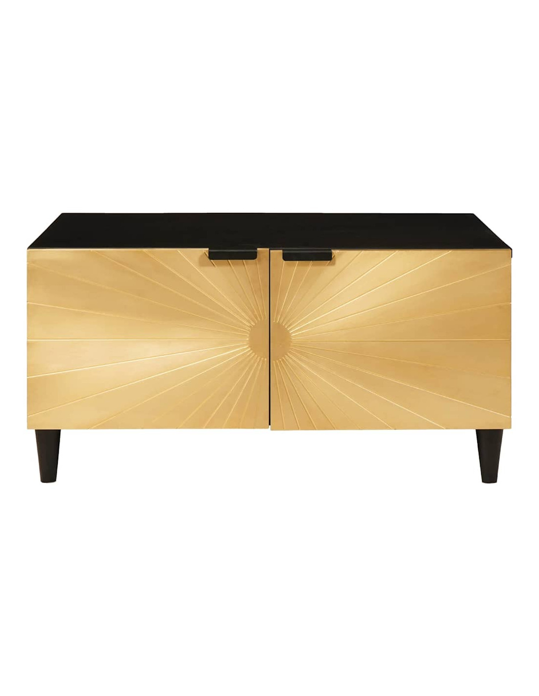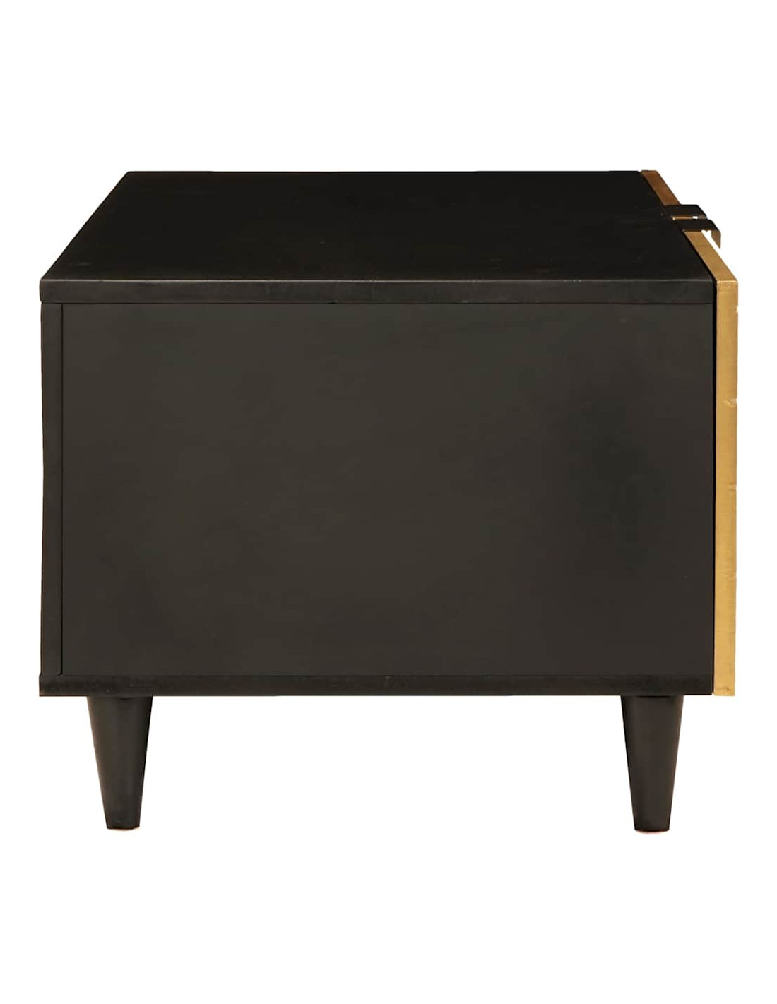 Questo tavolino da caffè in legno ha un design rettangolare elegante, perfetto per case moderne. Bilancia alla grande funzionalità e stile, diventando un pezzo chiave nel tuo soggiorno e una superficie utile per bevande, riviste e decorazioni. La sua finitura nera e oro realmente esalta l'atmosfera della tua casa, rendendolo una scelta super per qualsiasi arredamento. Il design gioca su linee pulite e semplicità, adattandosi perfettamente a spazi minimalisti e aggiungendo un tocco di classe anche a quelli più tradizionali.