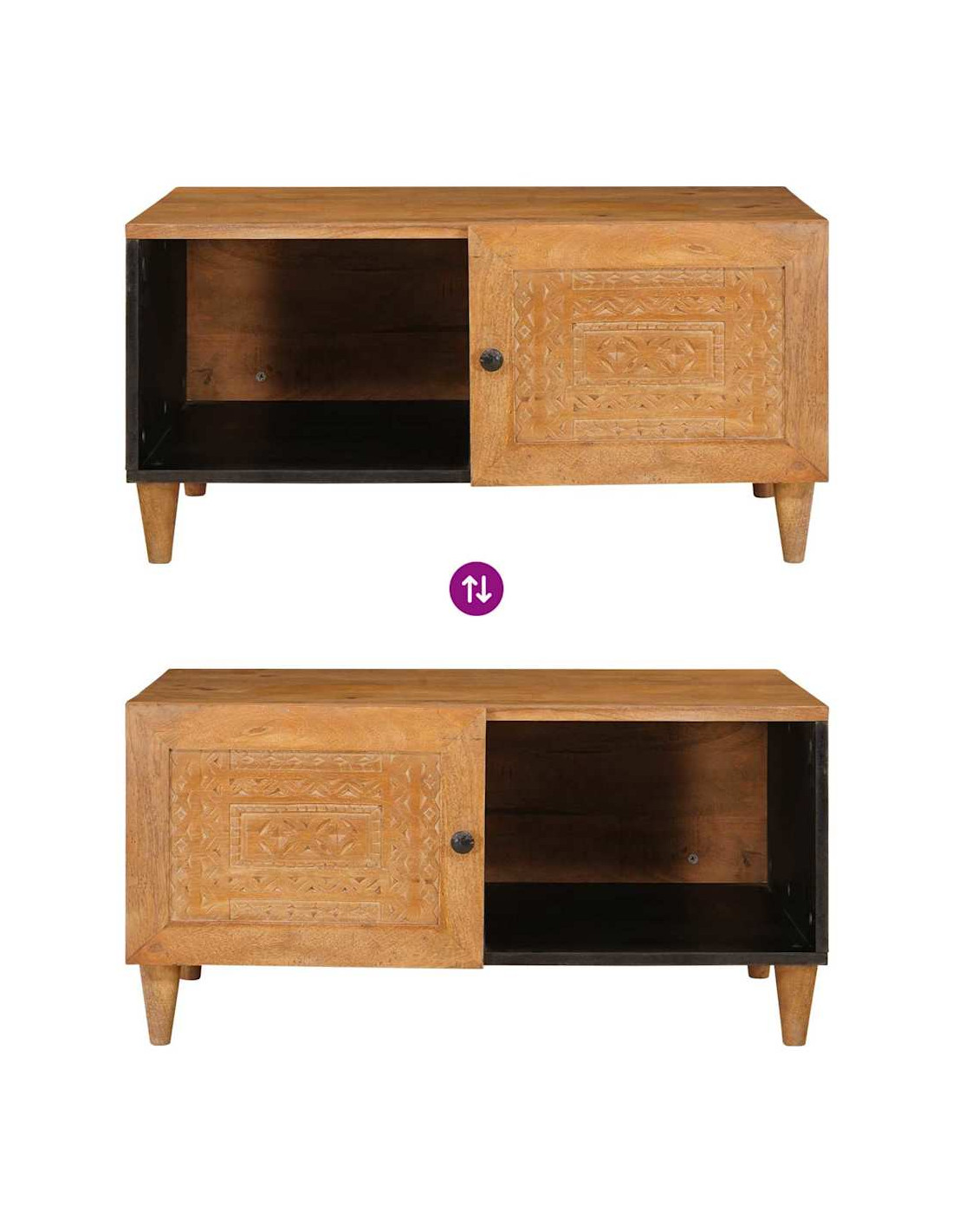 - Materiali: Questo tavolino è fatto in legno massello di mango, famoso per la sua solidità e la bella venatura, facendolo una scelta di arredamento bella e robusta. Questa texture rustica non è solo esteticamente gradevole, ma resiste anche all'usura quotidiana.