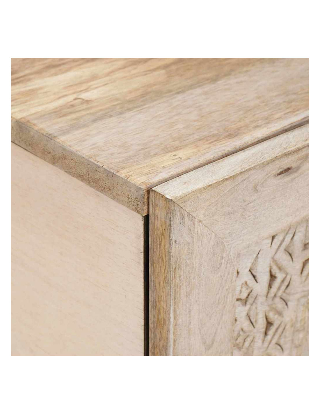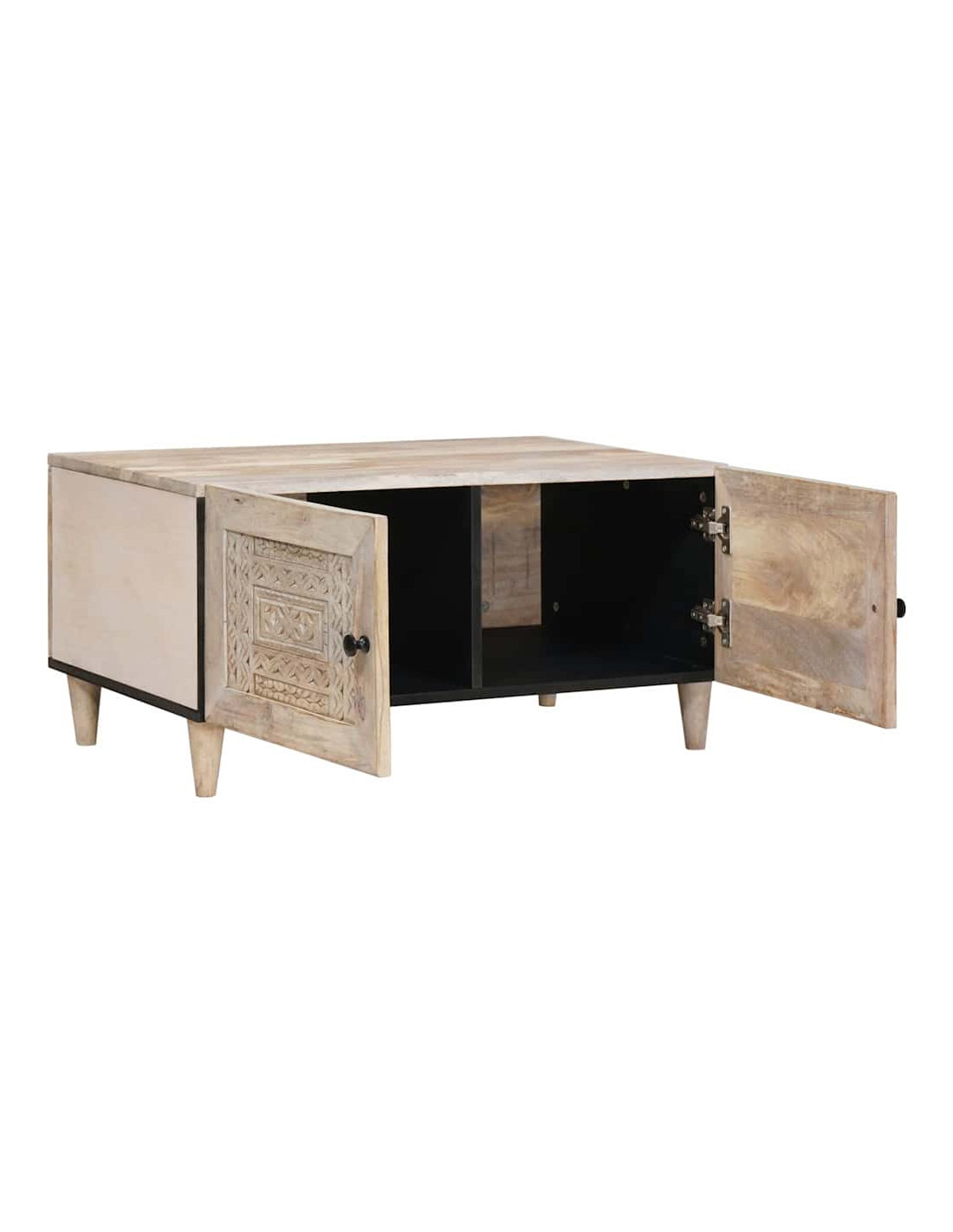 - Materiali: Fatto in legno massello di mango, questo tavolino ha un fascino rustico che sta bene ovunque. La sua durata assicura che rimanga affidabile nel tempo, anche con un uso intenso. La solida costruzione resiste allo sbiadimento, mantenendo intatto il suo fascino.