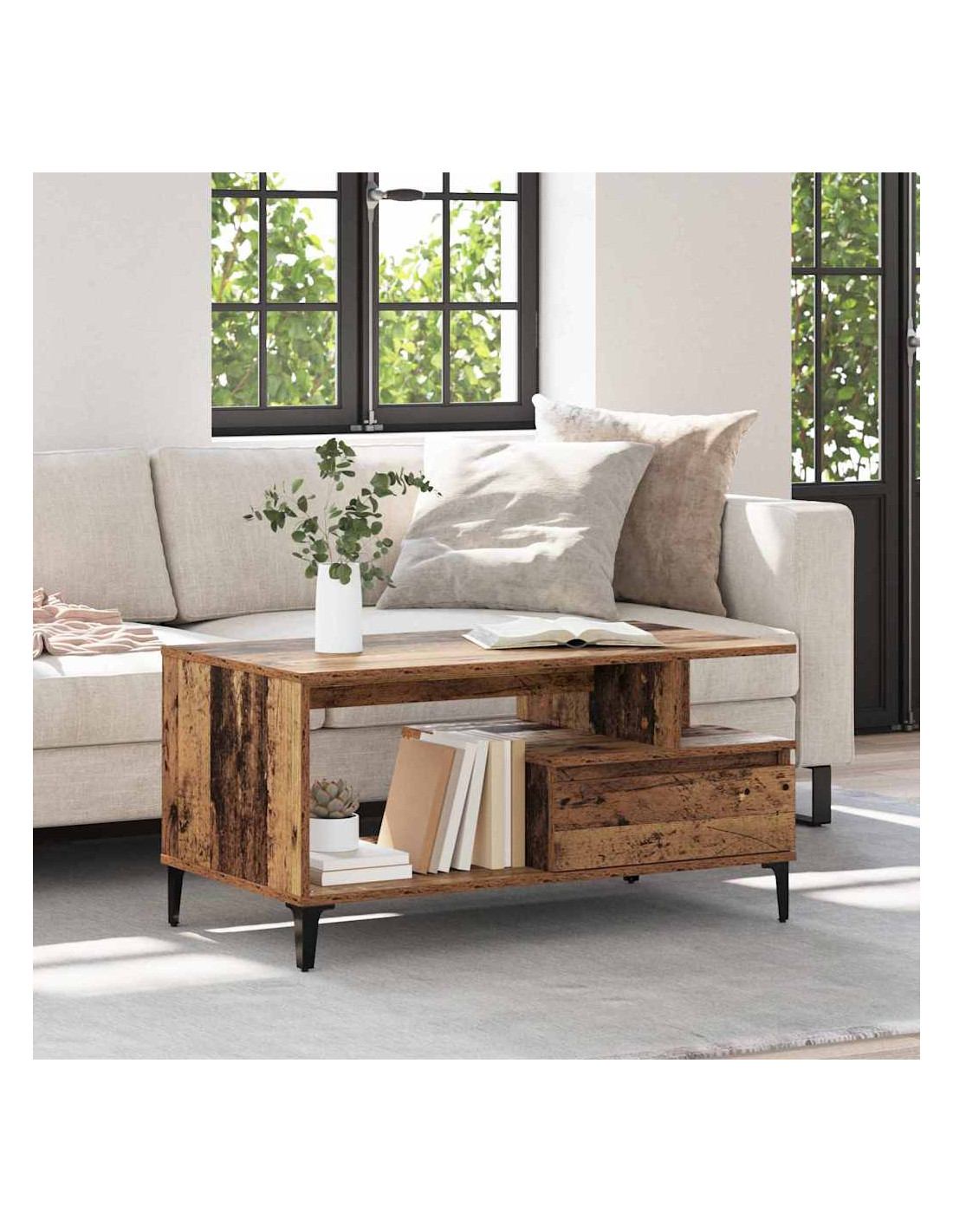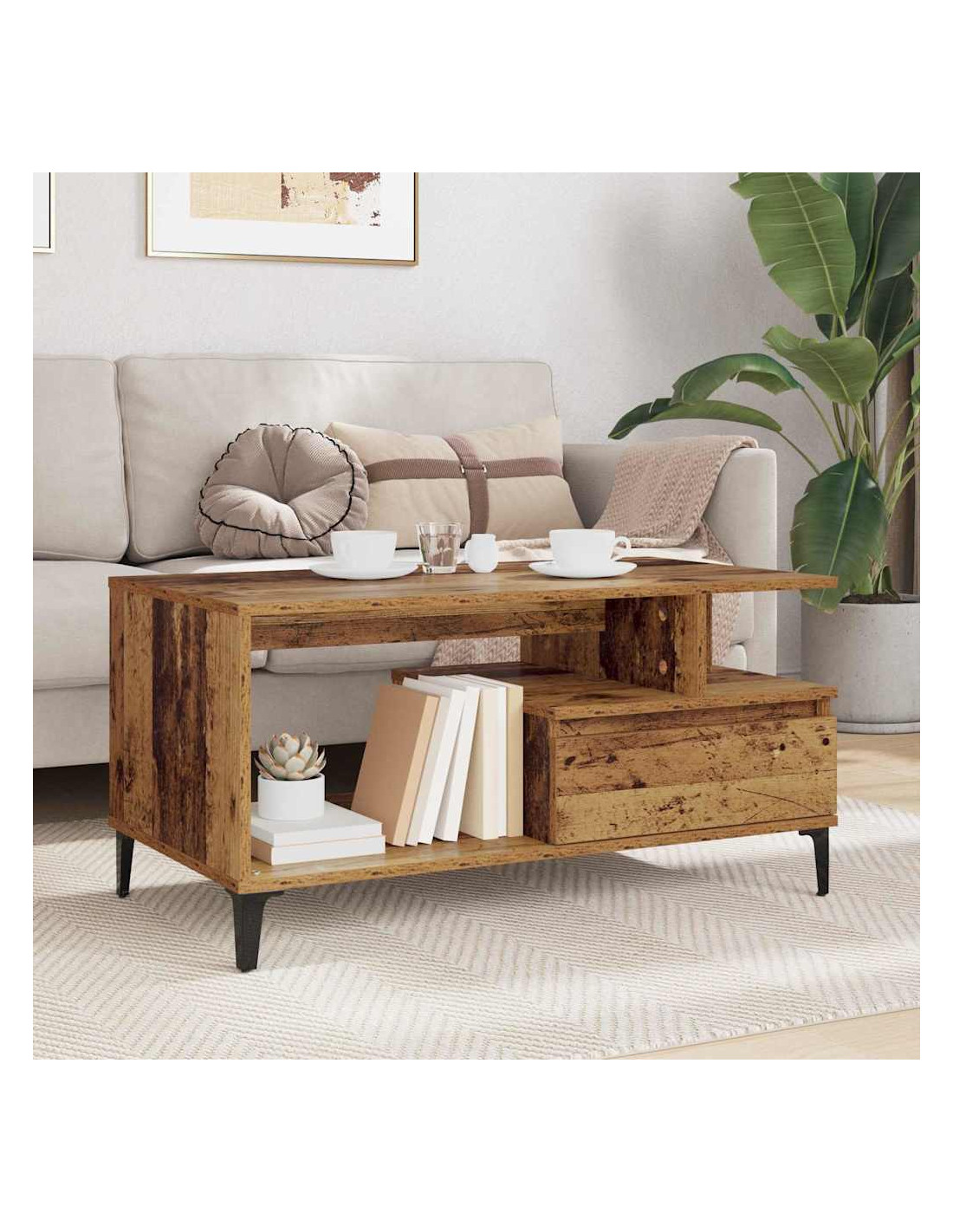 - Caratteristiche / Funzione / Design: Con un meccanismo di cassetto tradizionale, il tavolo include cassetti in legno ingegnerizzato, garantendo funzionalità di stoccaggio. Questa caratteristica offre spazio per oggetti essenziali, mantenendo il soggiorno sempre in ordine.