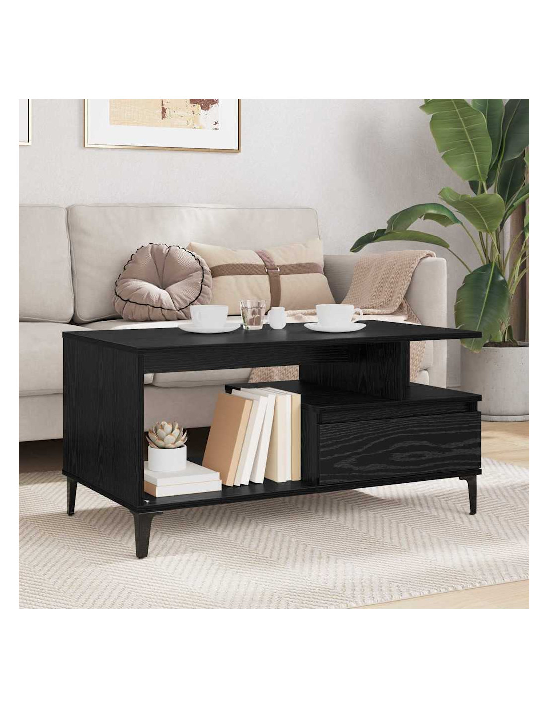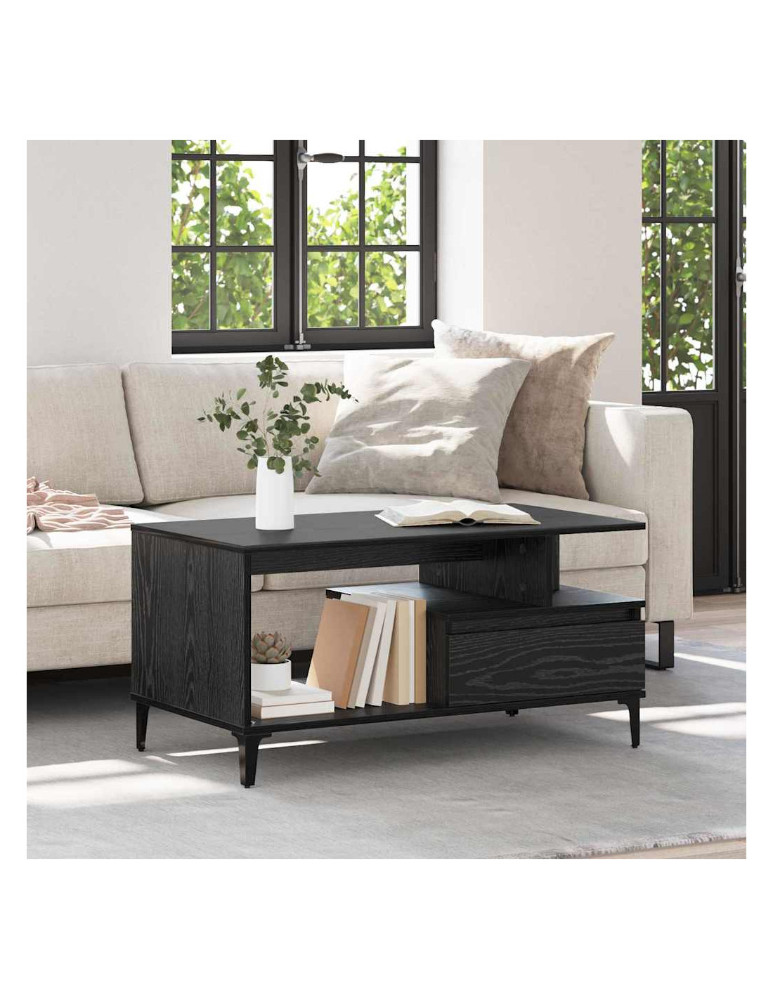 Questo tavolino moderno completa alla perfezione qualsiasi soggiorno. Con il suo design elegante, è un pezzo funzionale e alla moda che migliora l'atmosfera di qualsiasi ambiente. Grazie alla sua ampia superficie, puoi riporre bevande, riviste e oggetti decorativi, abbinandosi bene al tuo arredamento. È versatile e si adatta a qualsiasi stile, ideale per momenti di relax o per socializzare.