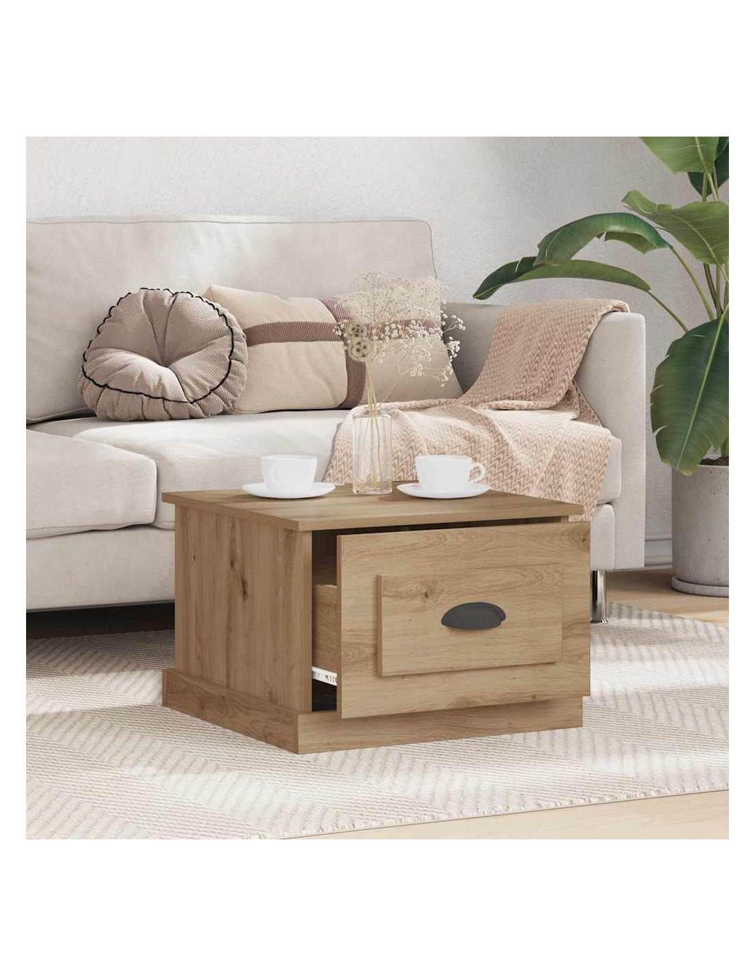 - Caratteristiche / Funzione / Design: Questo tavolo è pensato per avere un doppio scopo; principalmente, è una superficie robusta per l'uso quotidiano, ma offre anche spazio di archiviazione per tenere in ordine il tuo ambiente. Il cassetto integrato ti aiuta a organizzare cose come sottobicchieri, telecomandi o libri, mantenendo la stanza in ordine senza rinunciare allo stile.