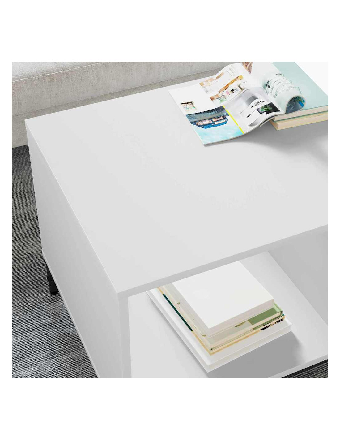 - Superficie in Legno Ingegnerizzato Questo tavolino presenta una superficie liscia e resistente all'abrasione, offrendo un aspetto elegante che si sposa con interni moderni, rimanendo duraturo. La finitura robusta lo rende un'ottima scelta per case con molto passaggio o stili di vita dinamici.