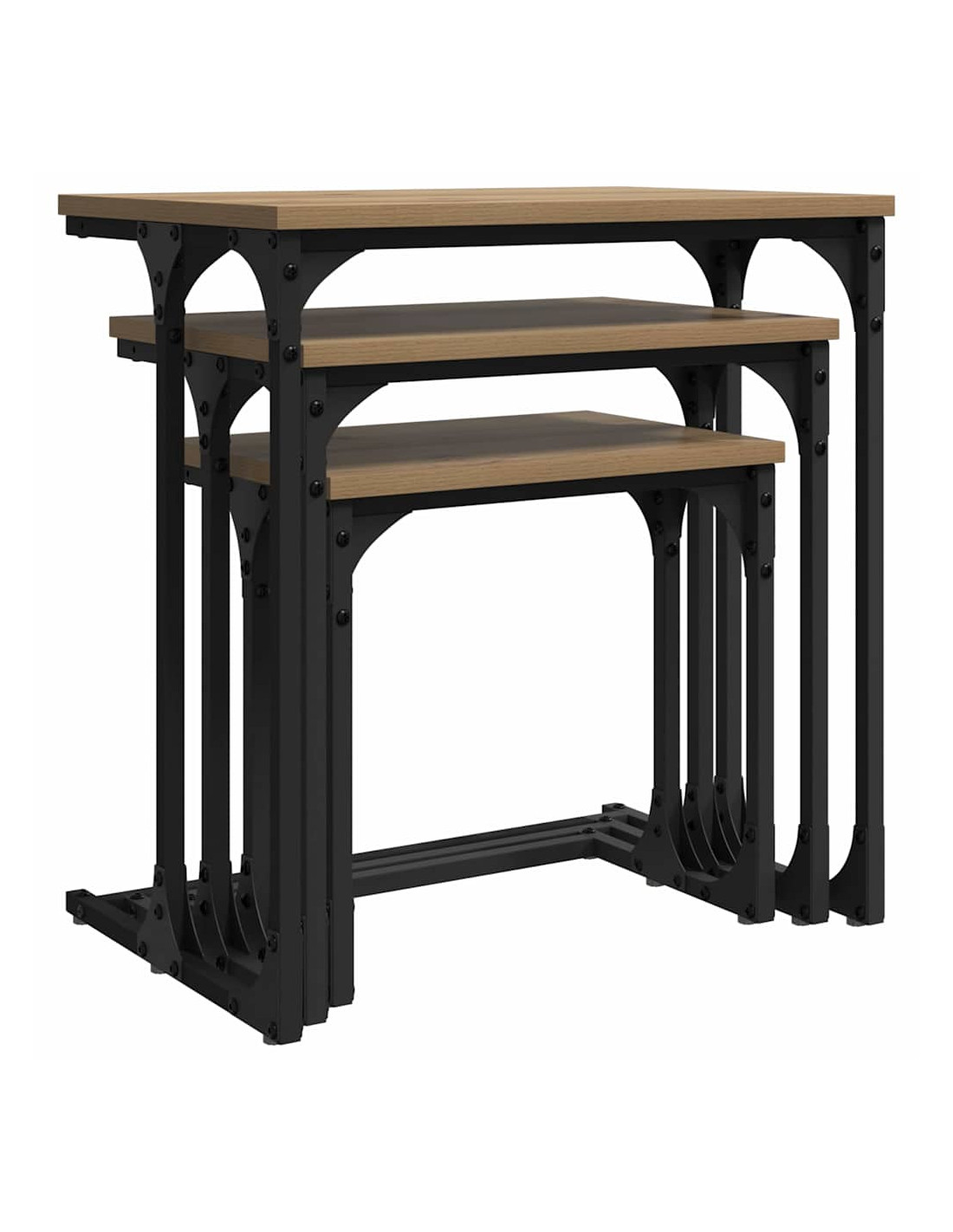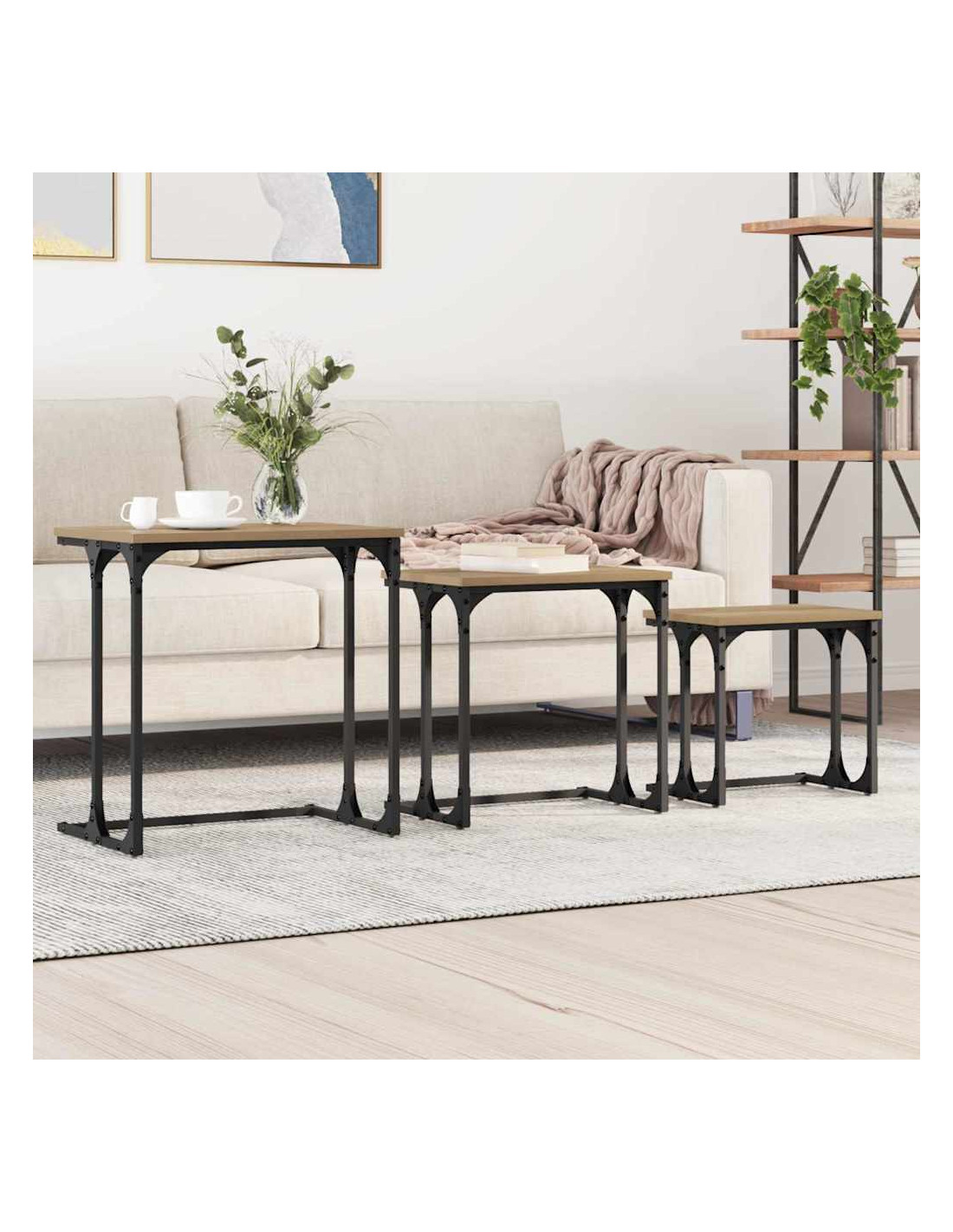 I Tavoli da Annidamento Industriali uniscono stile e funzionalità, rendendoli l'aggiunta perfetta a qualsiasi soggiorno moderno. Con la loro forma rettangolare elegante e un design robusto, mescolano praticità urbana e chic contemporaneo. Il set include tre tavoli che si incastrano perfettamente, ottimizzando lo spazio e offrendoti una soluzione versatile per varie occasioni. La finitura opaca testurizzata e il telaio in acciaio nero regalano ai tavoli un look audace, facendoli diventare il fulcro del tuo soggiorno.