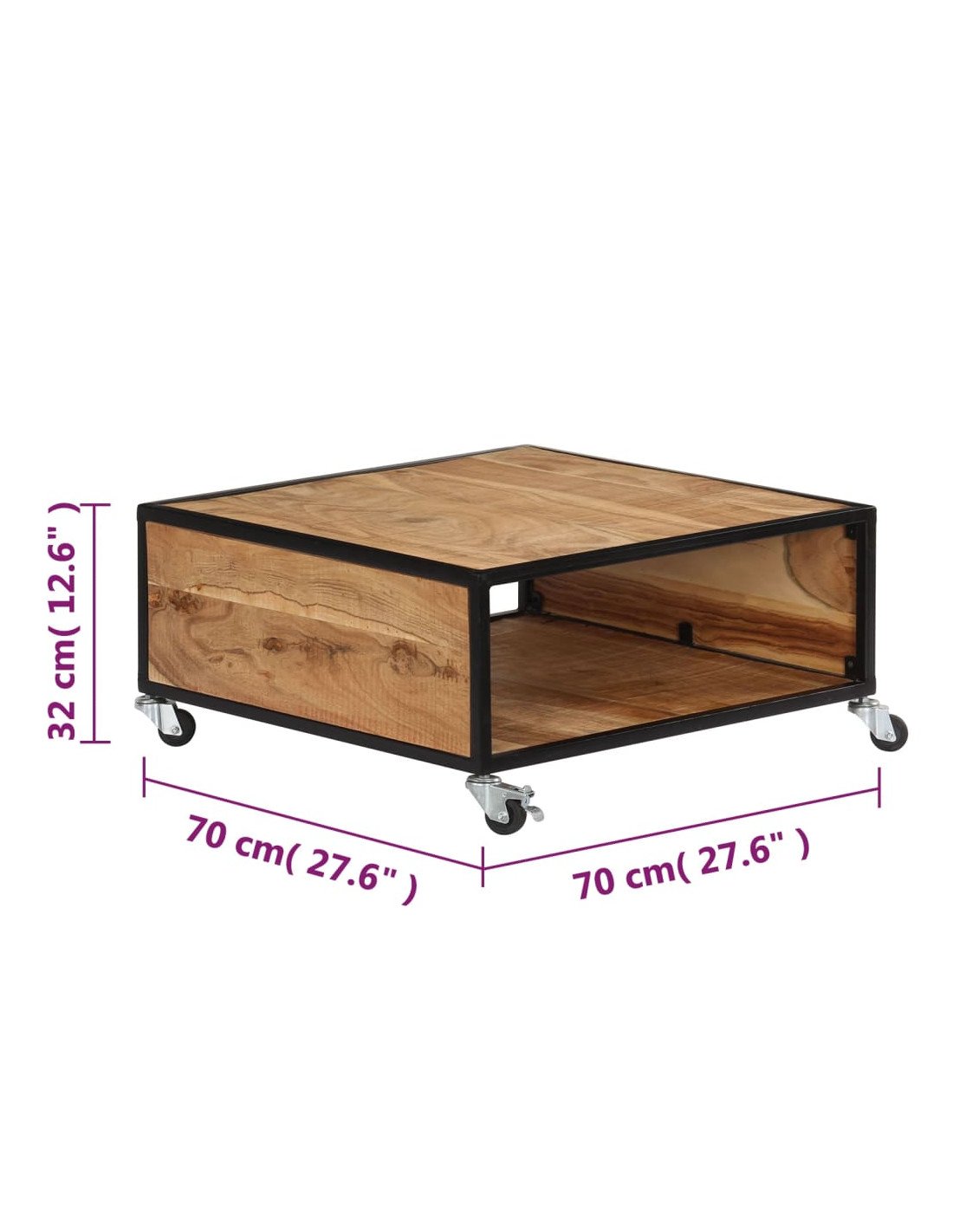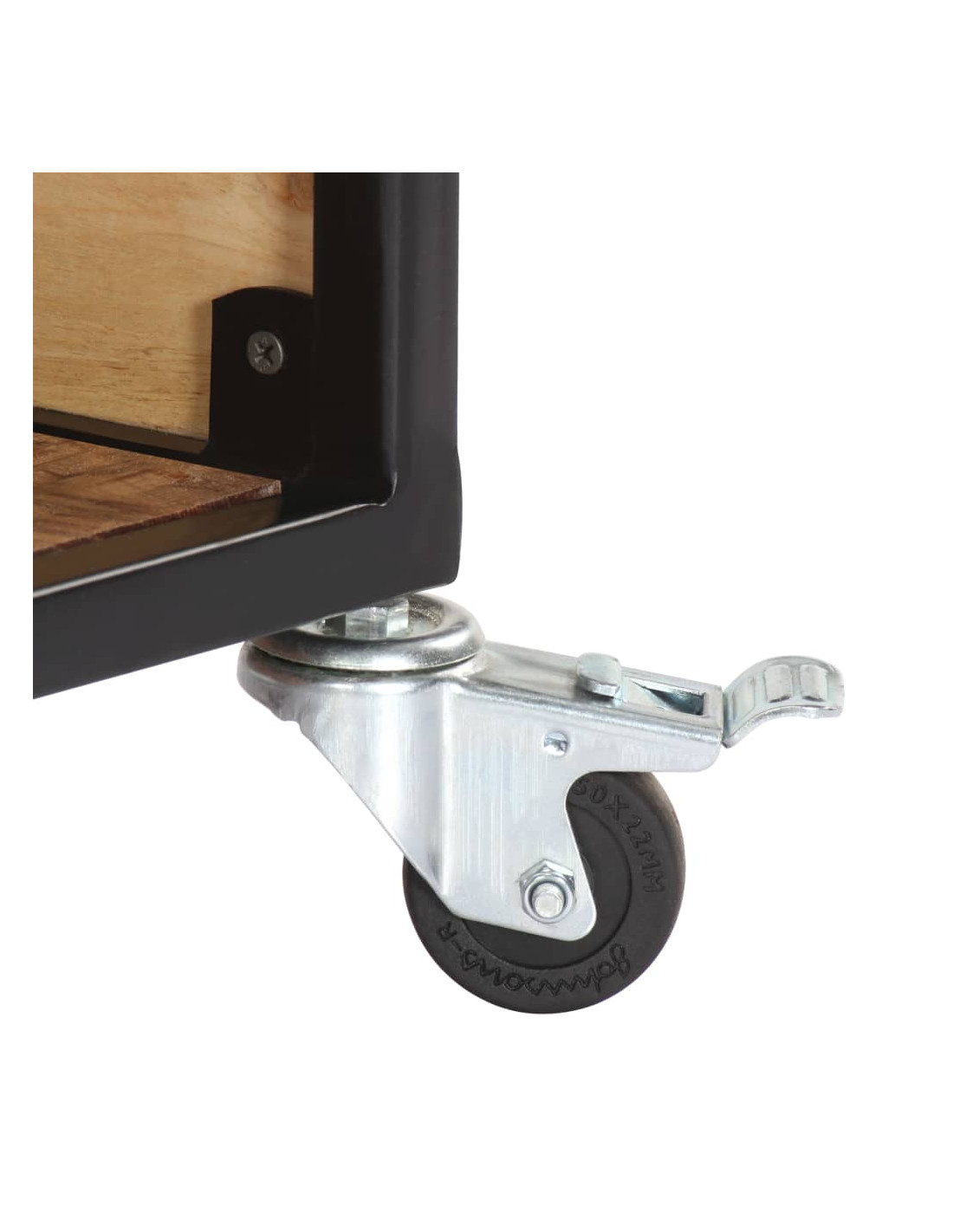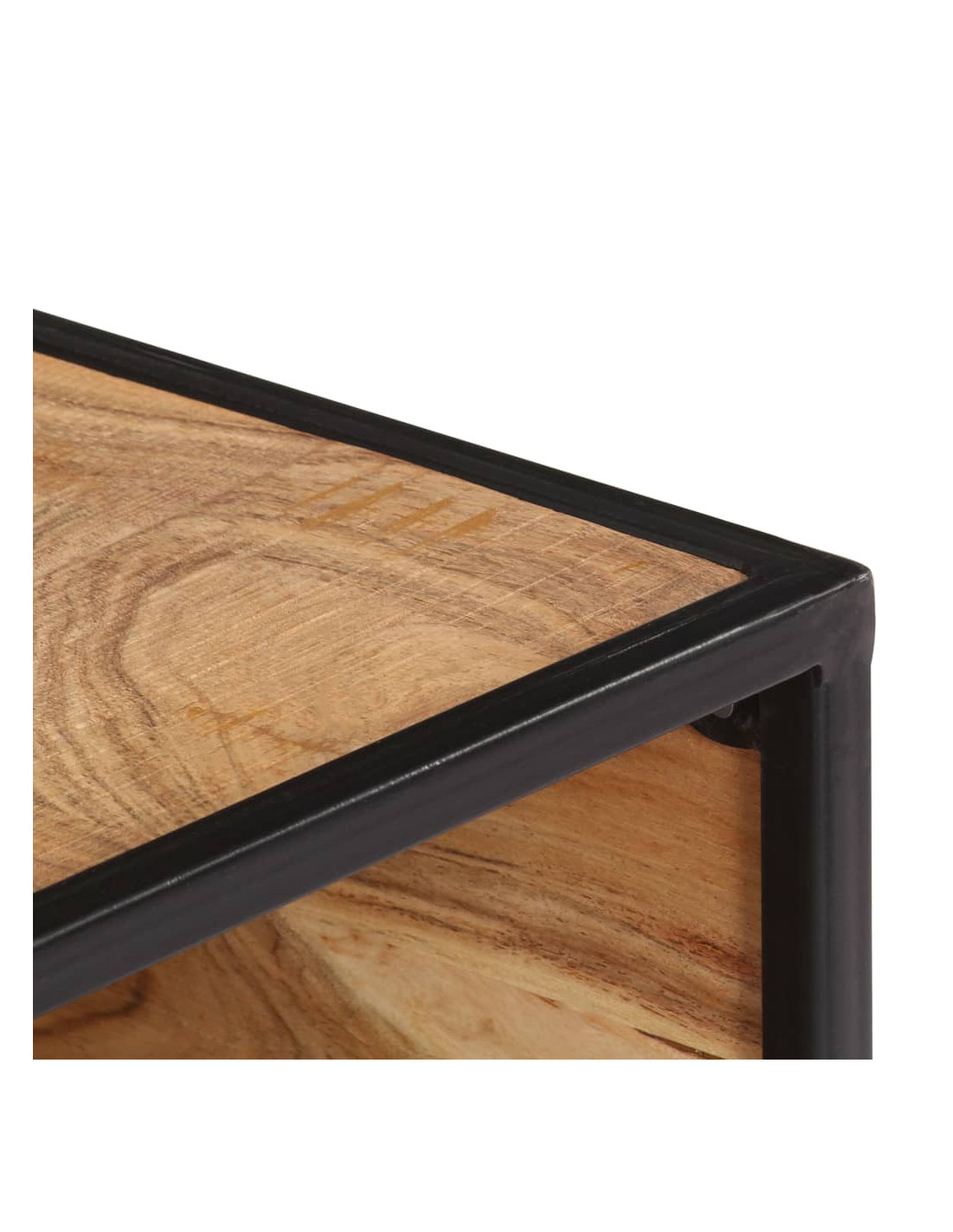 Il tavolino è realizzato in legno massello di acacia a cui è stata data una finitura mediante lucidatura e laccatura, per conferirgli un aspetto raffinato. La lavorazione artigianale e le pregiate venature del legno rendono ogni mobile unico e leggermente diverso dagli altri. Questo tavolino è dotato di 1 scomparto, che offre ampio spazio per riporre apparecchi multimediali, libri e vari altri oggetti. Dotato di 4 rotelle, il tavolino in legno è facile da spostare.