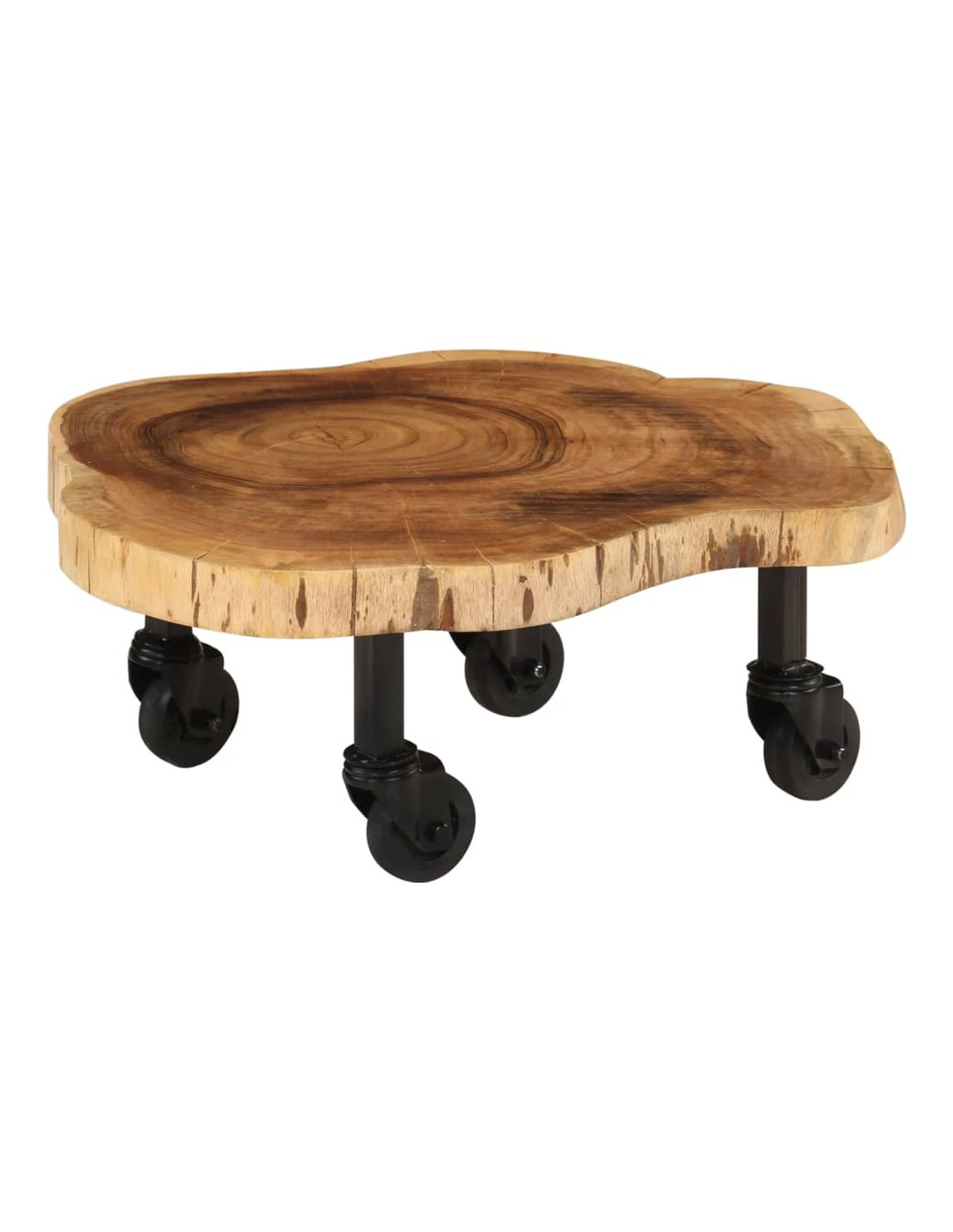 Il tavolino da caffè è realizzato in legno massello di acacia di alta qualità, un legno duro tropicale, resistente alle intemperie e durevole. Ogni fase del processo viene effettuata con la massima cura, che si tratti di levigatura, lucidatura, pittura o laccatura. La lavorazione artigianale e le belle venature del legno rendono ogni mobile unico e leggermente diverso dagli altri. Il robusto ripiano del tavolo offre spazio per riporre spuntini o piccoli oggetti decorativi. Progettato con 3 ruote flessibili, può essere facilmente spostato per la casa. Il tavolo è facile da assemblare.