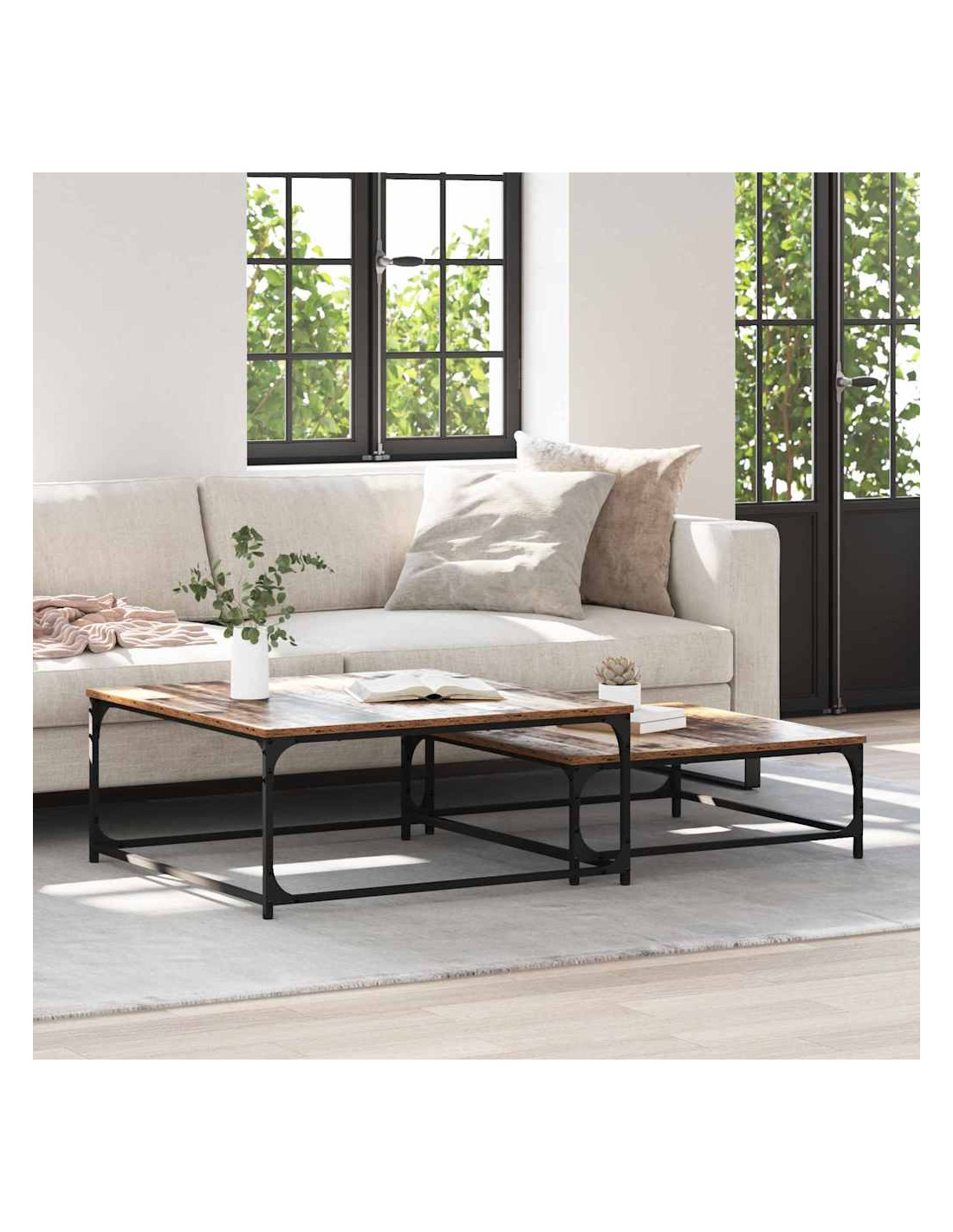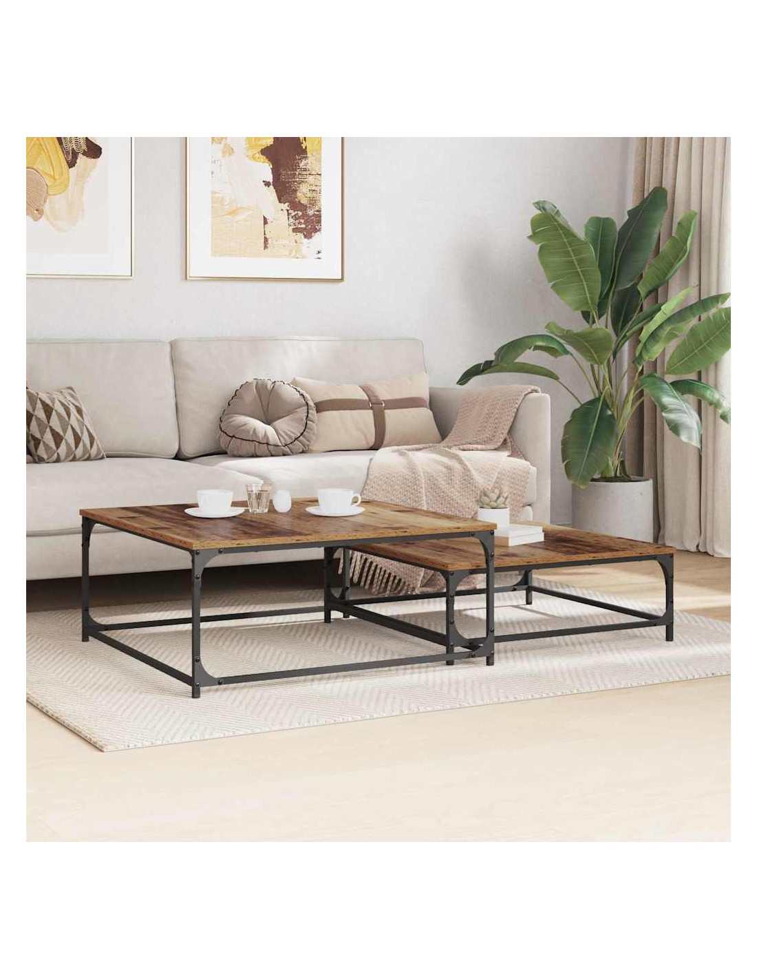 Questo set di tavolini da caffè impilabili è tutto un mix di funzionalità e stile, ispirato al design industriale. È pensato per dare un tocco al tuo soggiorno con la sua superficie in legno ingegnerizzato, liscia e facile da pulire. I tavoli quadrati si incastrano bene, quindi se vuoi mostrare qualcosa, avere un posto per la tua bevanda, o semplicemente chiacchierare con amici, questi tavoli sono super adatti.