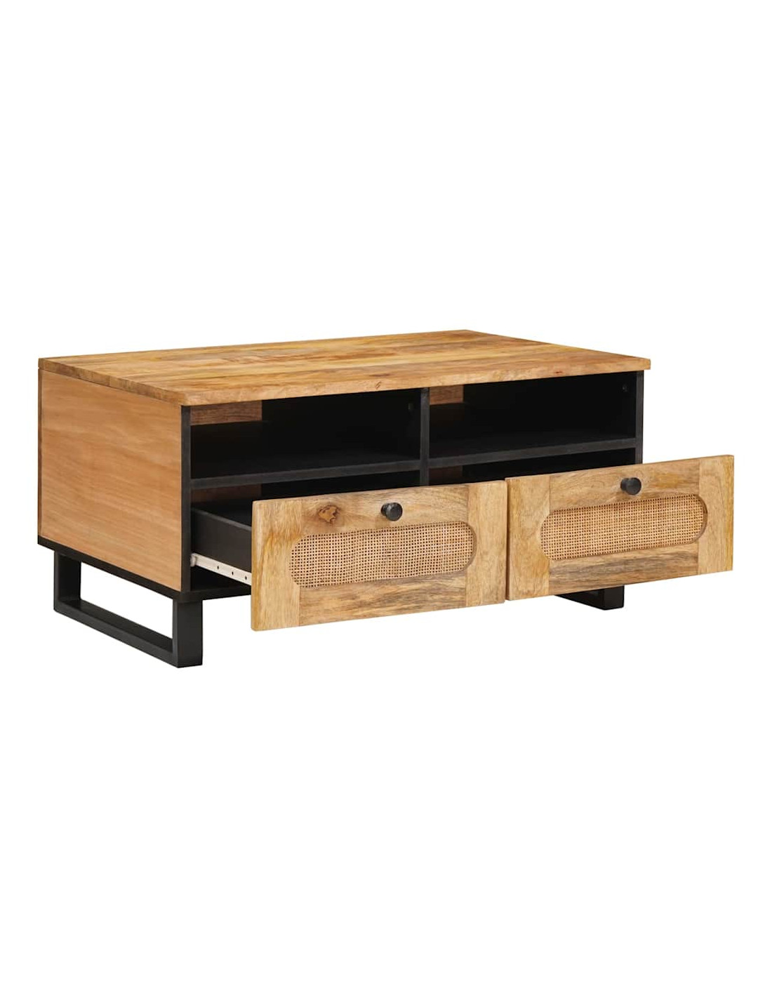 - Cassetti funzionali Ha cassetti progettati per rendere facile l'organizzazione, offrendo ampio spazio per mantenere in ordine il salotto. I cassetti in legno massello di mango scorrono bene, permettendo di riporre riviste, telecomandi e altri oggetti in modo invisibile. La finitura marrone dei cassetti si abbina perfettamente allo stile del tavolo, creando un aspetto coeso nel tuo arredo.
