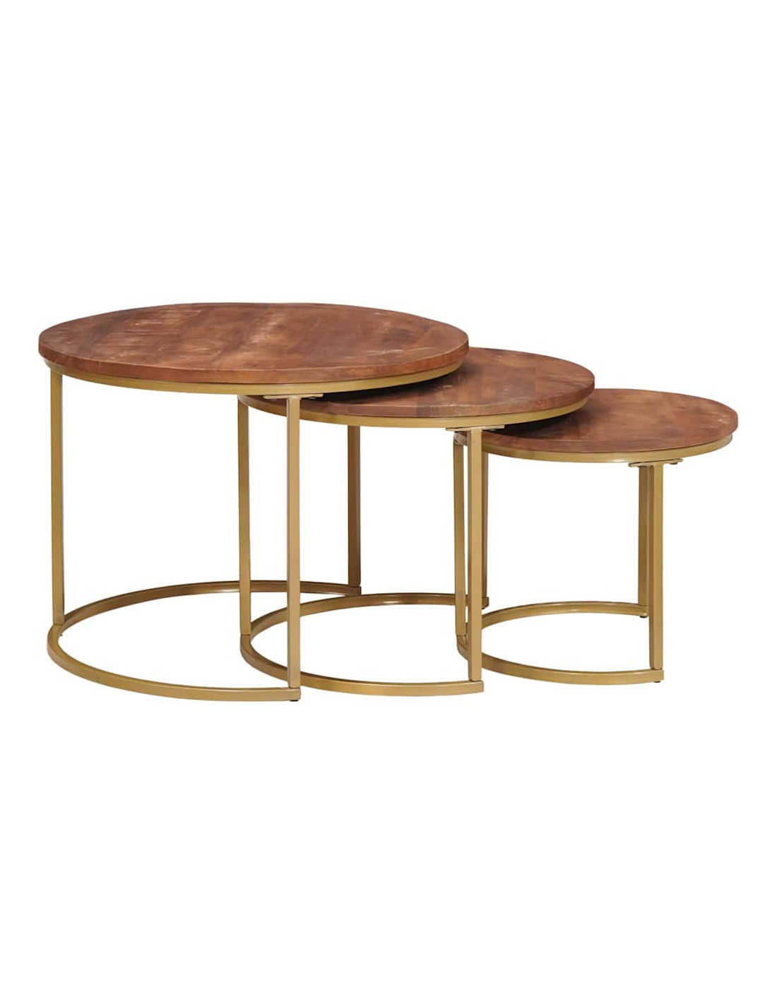Questo set di tavolini impilabili mescola la bellezza del legno massello di mango con il design industriale dell'acciaio verniciato. Sono pensati per adattarsi perfettamente a interni moderni, grazie al loro profilo arrotondato e all'estetica minimalista. Ottimi per il soggiorno, offrono soluzioni versatili per esporre decorazioni, appoggiare bevande e tenere riviste o libri in ordine. La fusione di materiali e un design ben pensato creano un punto focale che combina stile e funzionalità.