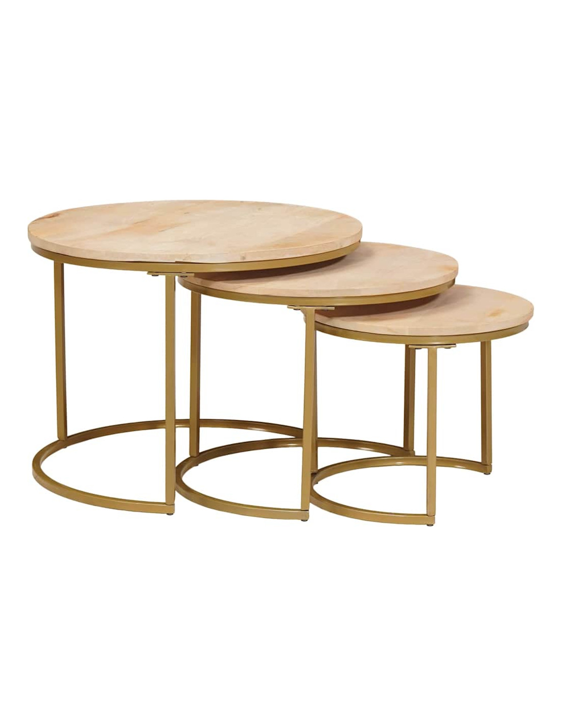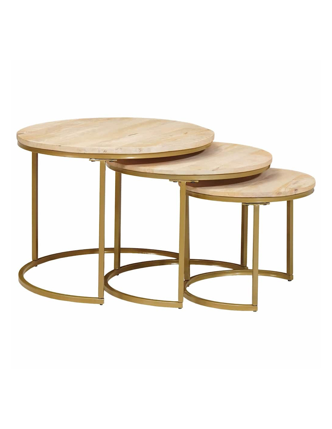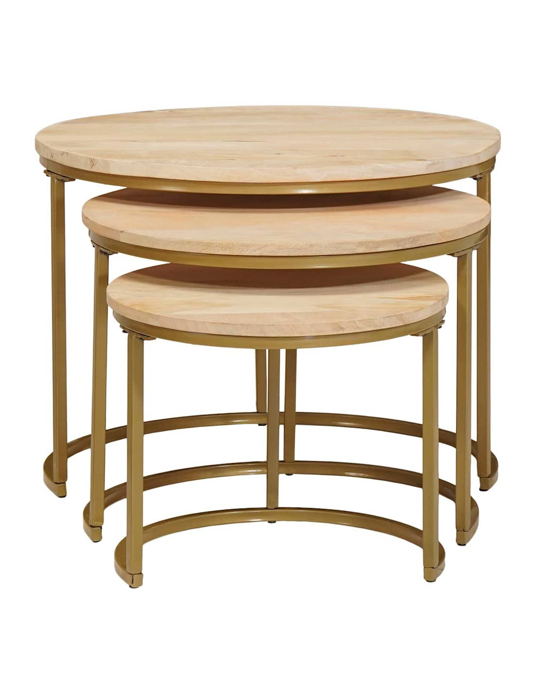 Questo set di tavolini impilabili mescola la bellezza del legno massello di mango con il design industriale dell'acciaio verniciato. Sono pensati per adattarsi perfettamente a interni moderni, grazie al loro profilo arrotondato e all'estetica minimalista. Ottimi per il soggiorno, offrono soluzioni versatili per esporre decorazioni, appoggiare bevande e tenere riviste o libri in ordine. La fusione di materiali e un design ben pensato creano un punto focale che combina stile e funzionalità.