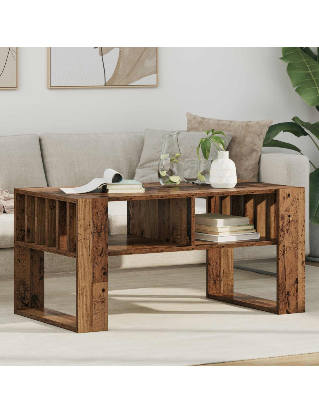 - Ripiani pratici Grazie ai suoi ripiani, il tavolino è ideale per tenere libri, riviste o telecomandi in ordine. Questi ripiani sono semplici e funzionali, si inseriscono bene nel design moderno del tavolo.