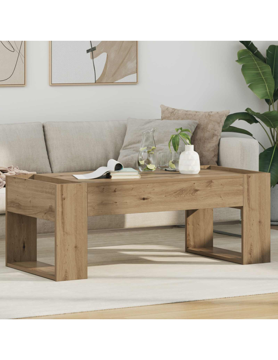 - Costruzione robusta: Questo tavolo è progettato per resistere all’uso di tutti i giorni. I componenti in legno ingegnerizzato, incluso il telaio e la superficie, offrono prestazioni durature, supportando sia funzioni pratiche che decorative senza compromettere la stabilità.