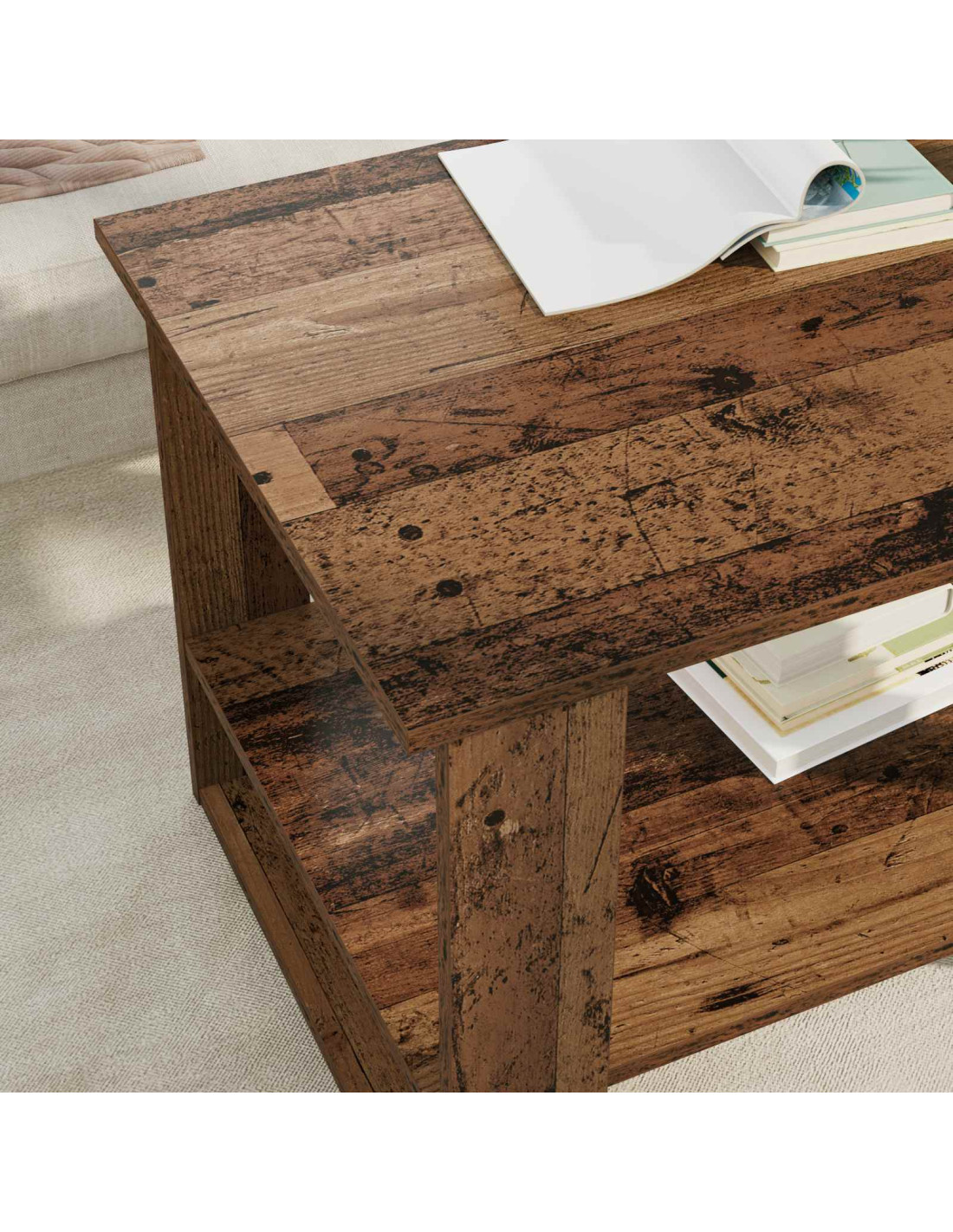 - Componenti Inclusi Ripiani in Pannelli Ha ripiani in legno semplici ma utili per avere più capacità di stoccaggio. Ideali per riporre riviste o altri oggetti, i ripiani aiutano a mantenere lo spazio ordinato, con tutto a portata di mano.