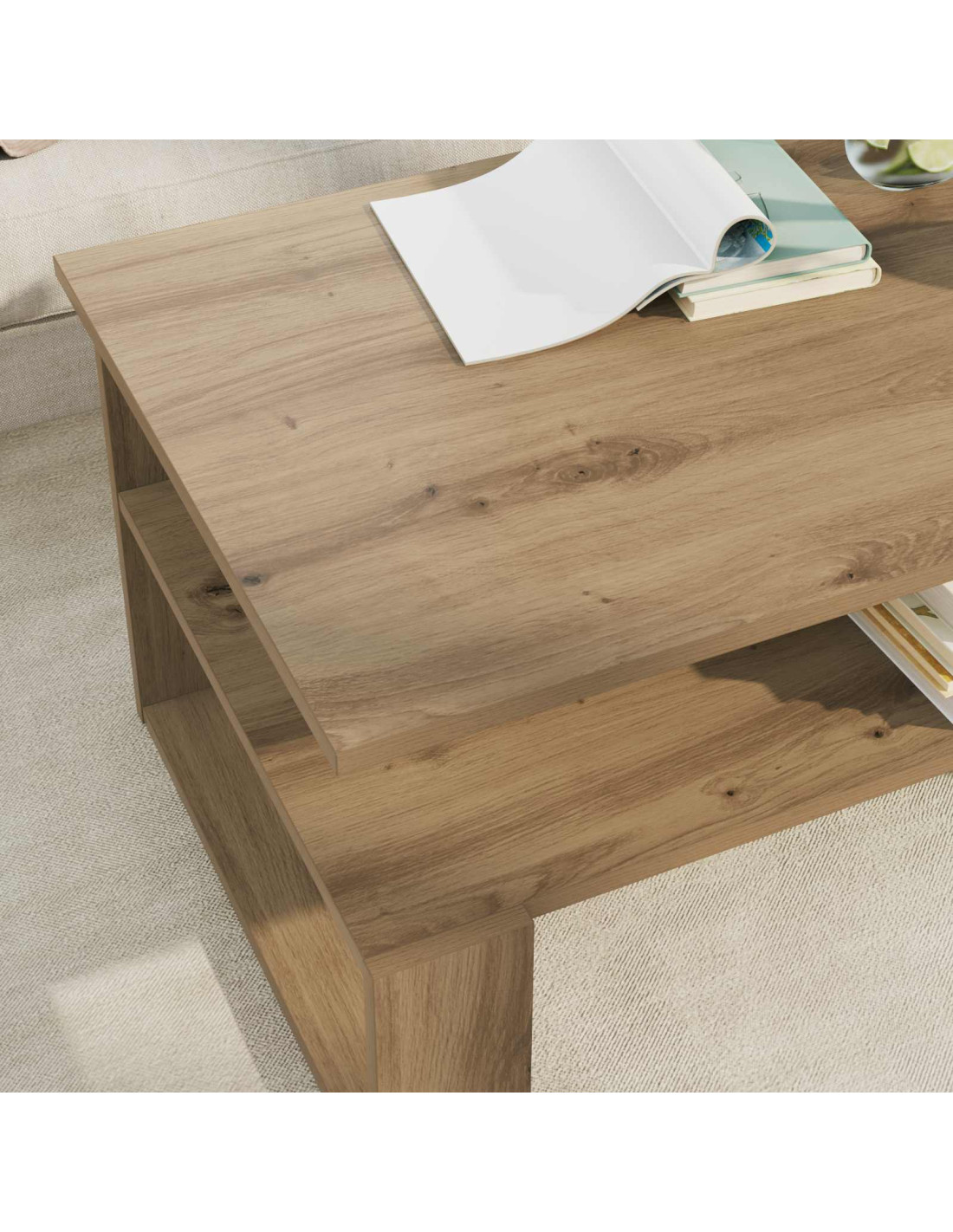 - Materiali in legno ingegnerizzato: Questo tavolino è realizzato in legno ingegnerizzato, noto per la sua durata e la finitura liscia. Porta un tocco naturale dentro casa e resiste bene all'uso quotidiano. Questo pezzo si integra facilmente con vari stili e offre anni di funzione.