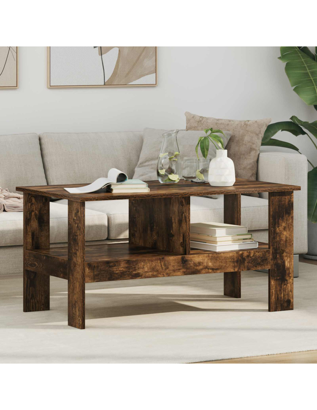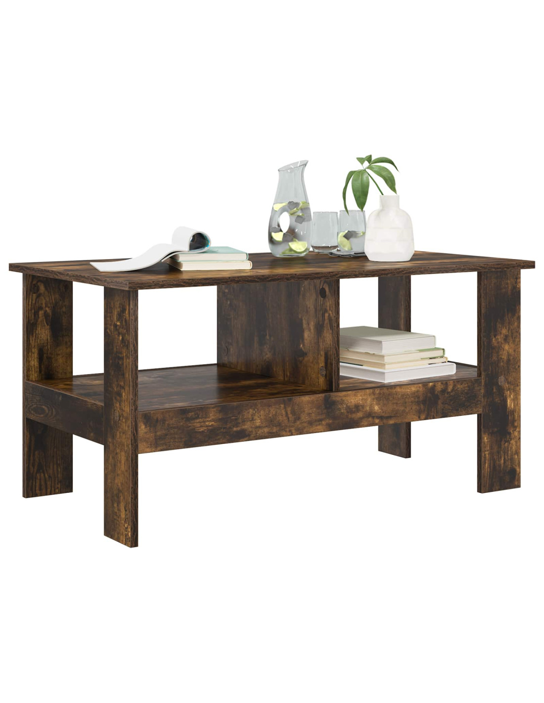 Questo tavolino da caffè moderno è l'ideale per migliorare sia il look che la funzionalità del tuo soggiorno. Con un design elegante e contemporaneo, diventa il punto focale per socializzare, rilassarsi o mettere in mostra oggetti. Il legno ingegnerizzato garantisce robustezza e ha una bellissima finitura che ricorda i mobili in legno classico. La superficie ampia e liscia è perfetta per utilizzare al meglio lo spazio, che sia per chiacchierate tra amici o per una lettura tranquilla.