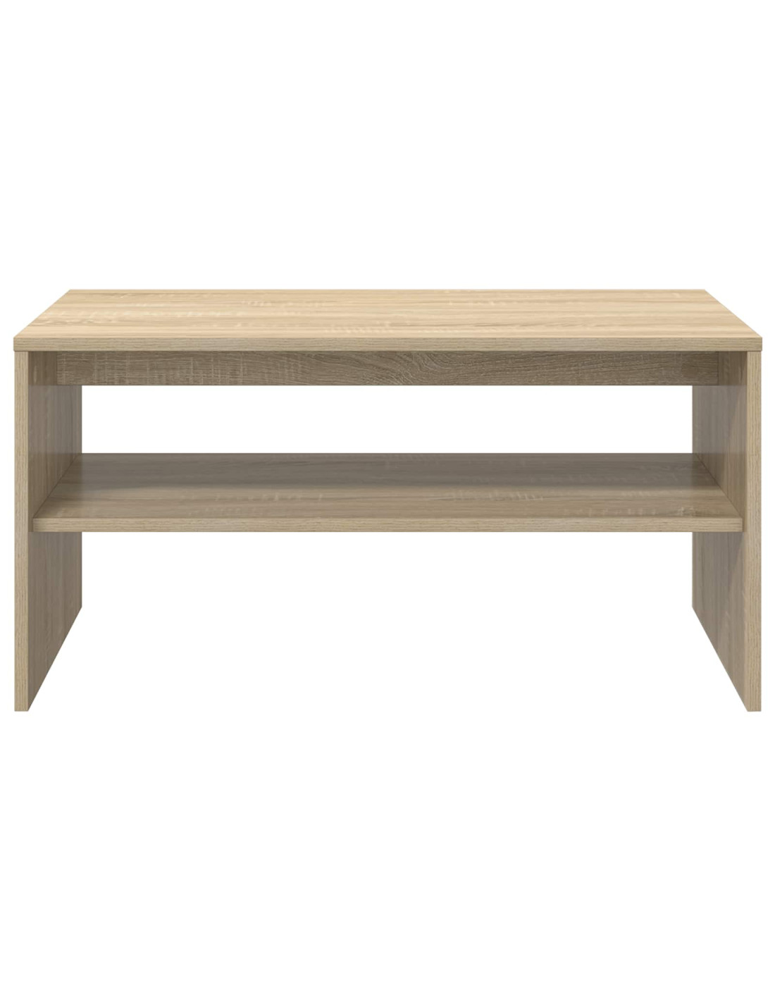 - Ripiani pratici Il tavolino ha ripiani a pannello che incrementano la funzionalità e forniscono soluzioni per riporre le cose. Questi ripiani, realizzati in legno ingegnerizzato dello stesso tipo, offrono un’armonia di materiali e aspetto, permettendo di organizzare libri, riviste e altri oggetti facilmente.