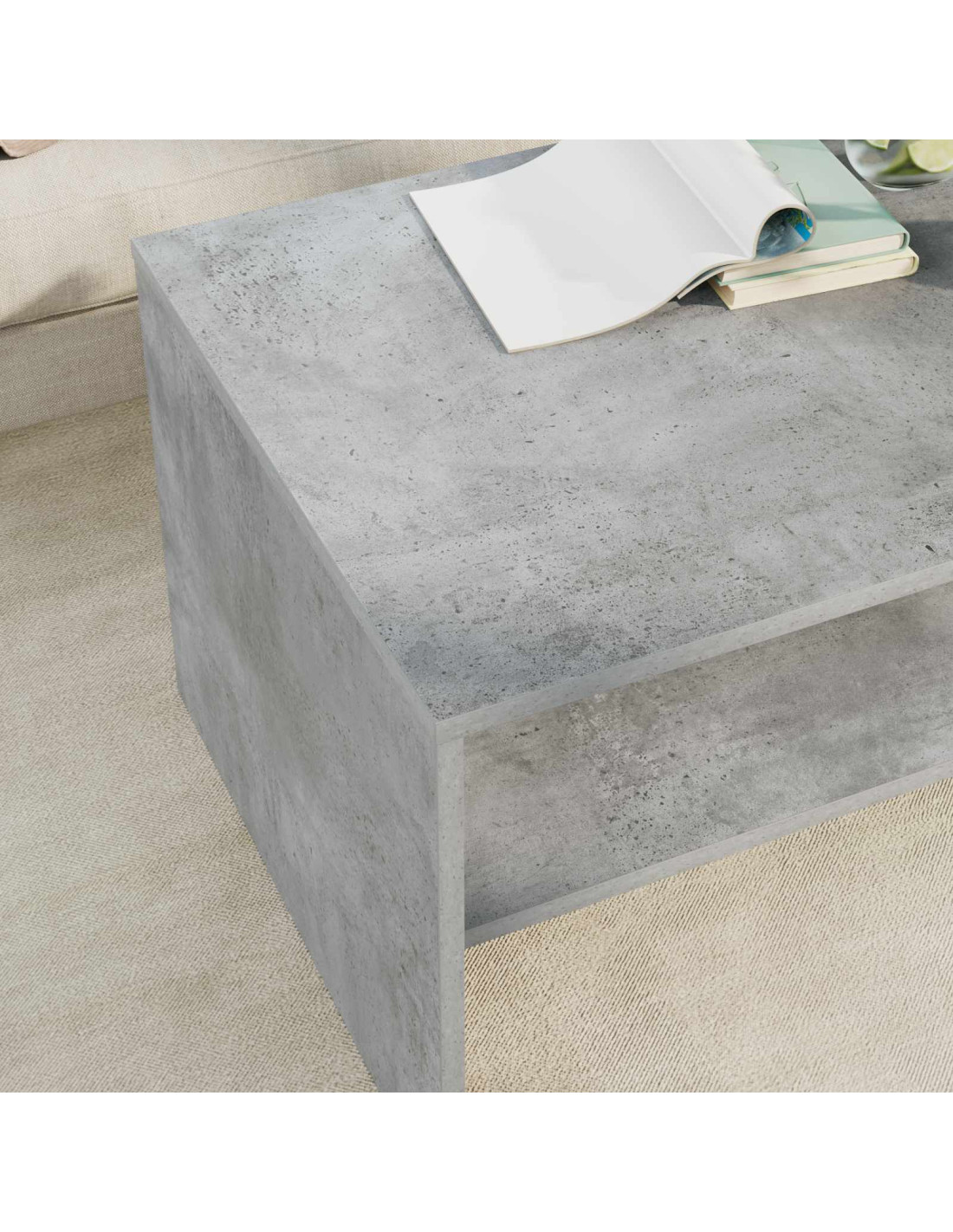 - Ripiani pratici Il tavolino ha ripiani a pannello che incrementano la funzionalità e forniscono soluzioni per riporre le cose. Questi ripiani, realizzati in legno ingegnerizzato dello stesso tipo, offrono un’armonia di materiali e aspetto, permettendo di organizzare libri, riviste e altri oggetti facilmente.