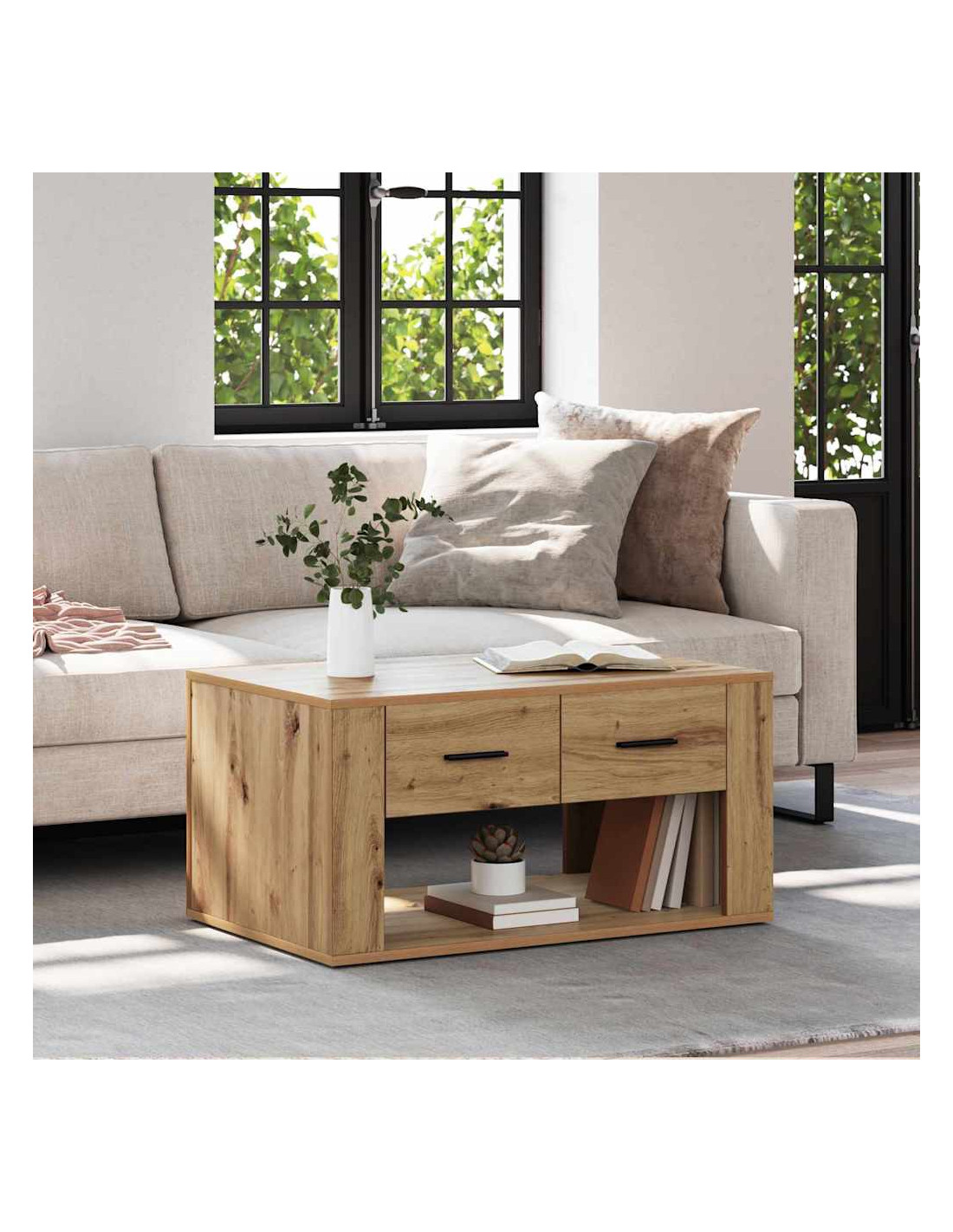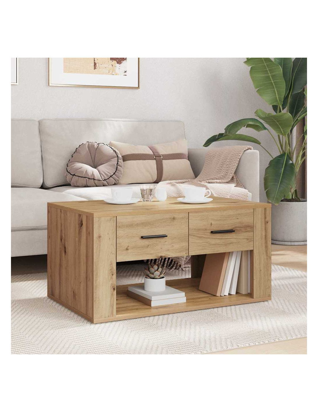 - Caratteristiche di design pratiche Questo tavolo ha un vano di stoccaggio incassato e un cassetto tradizionale in legno ingegnerizzato, con maniglie metalliche. Il design è perfetto per combinare funzionalità e stile, adattandosi alle varie esigenze del soggiorno senza perdere eleganza o praticità.