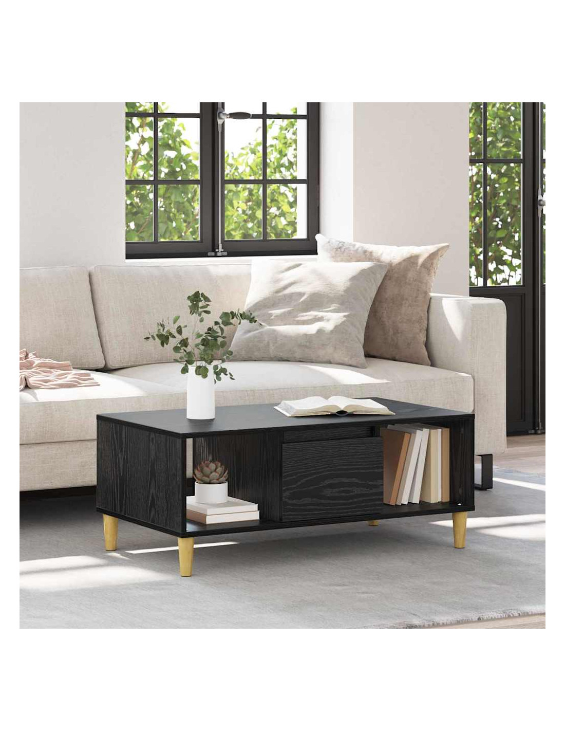 Questo tavolino da caffè moderno unisce stile e funzionalità. Con le sue linee pulite e un look semplice, si adatta bene a qualsiasi soggiorno, offrendo un'ottima estetica e praticità. Il suo design basso lo rende un elemento centrale perfetto per le aree relax, supportando comodamente bevande, riviste e decorazioni. Con il suo aspetto attuale, è versatile per l'uso e per l'esposizione, soddisfacendo chi cerca mobili eleganti e utili.