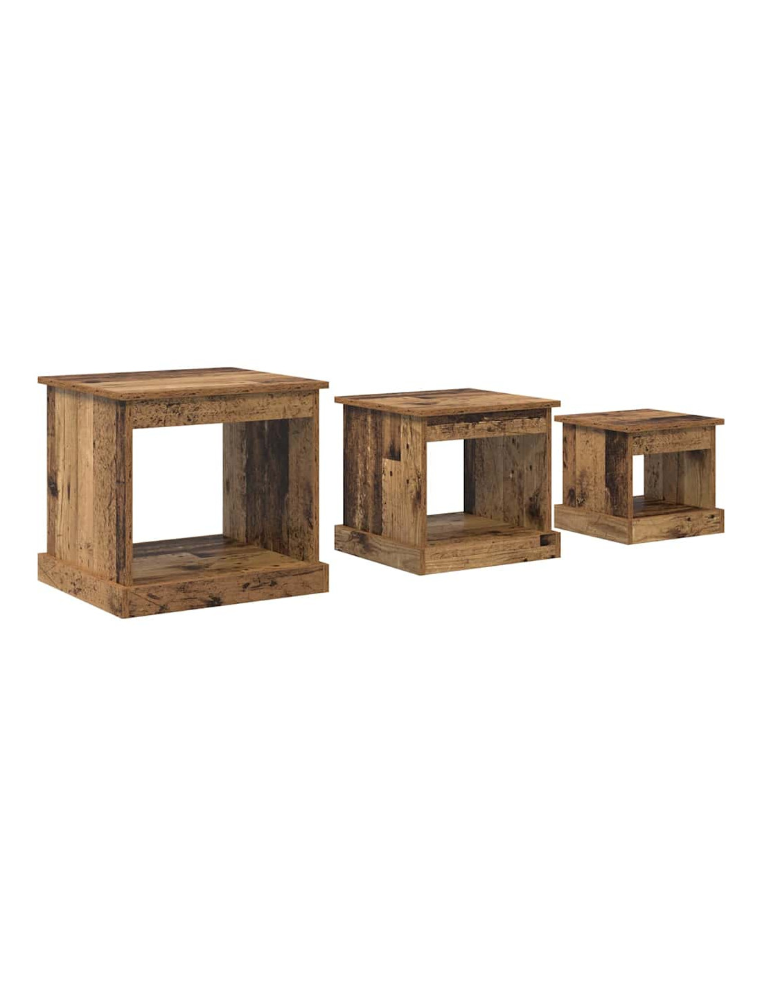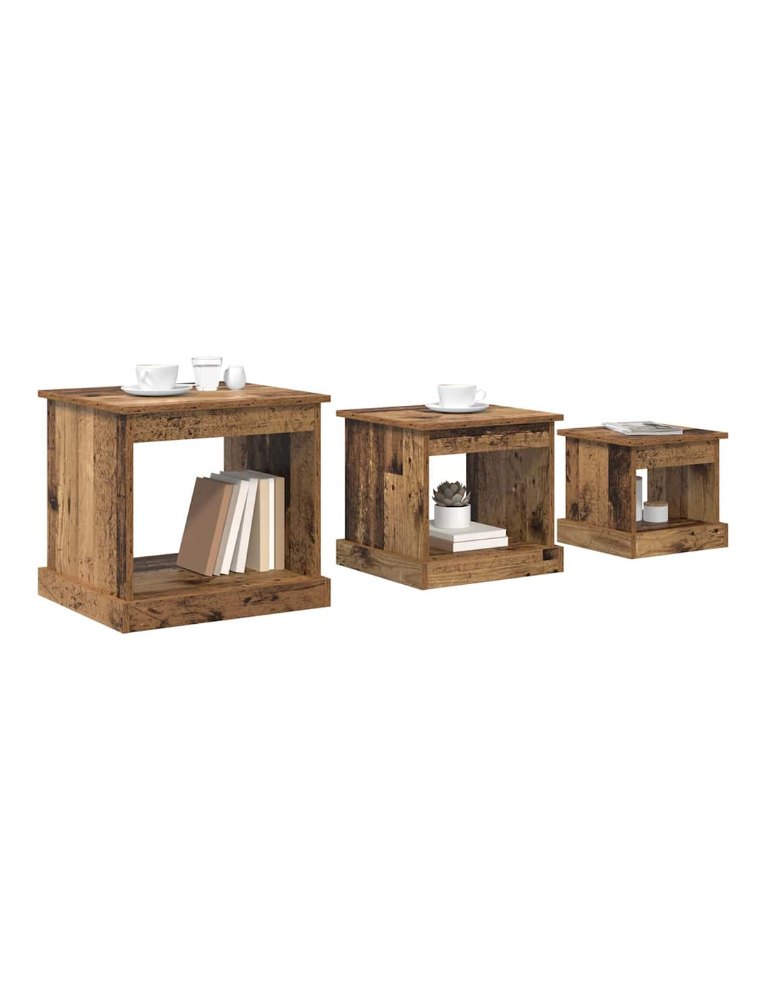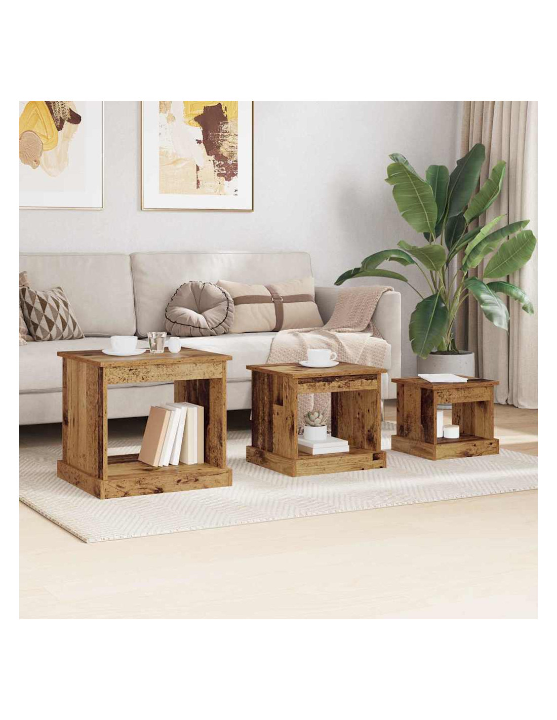 Questo set compatto di tavolini a incastro è un'ottima aggiunta a qualsiasi soggiorno, ufficio o camera da letto, portando un tocco rustico che si sposa bene con vari stili decorativi. La forma rettangolare e la texture particolare danno un'impressione naturale, perfetta per chi vuole aggiungere un pizzico di natura agli interni. Con la loro versatilità, questi tavolini sono superfici ideali per mostrare oggetti decorativi, appoggiare bevande o offrire spazio di lavoro extra.