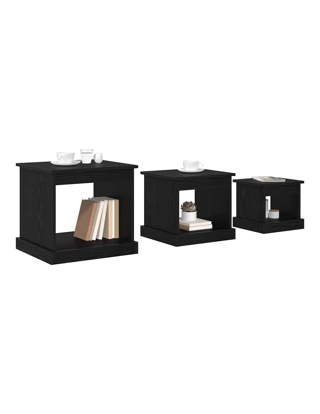 Questo set compatto di tavolini a incastro è un'ottima aggiunta a qualsiasi soggiorno, ufficio o camera da letto, portando un tocco rustico che si sposa bene con vari stili decorativi. La forma rettangolare e la texture particolare danno un'impressione naturale, perfetta per chi vuole aggiungere un pizzico di natura agli interni. Con la loro versatilità, questi tavolini sono superfici ideali per mostrare oggetti decorativi, appoggiare bevande o offrire spazio di lavoro extra.