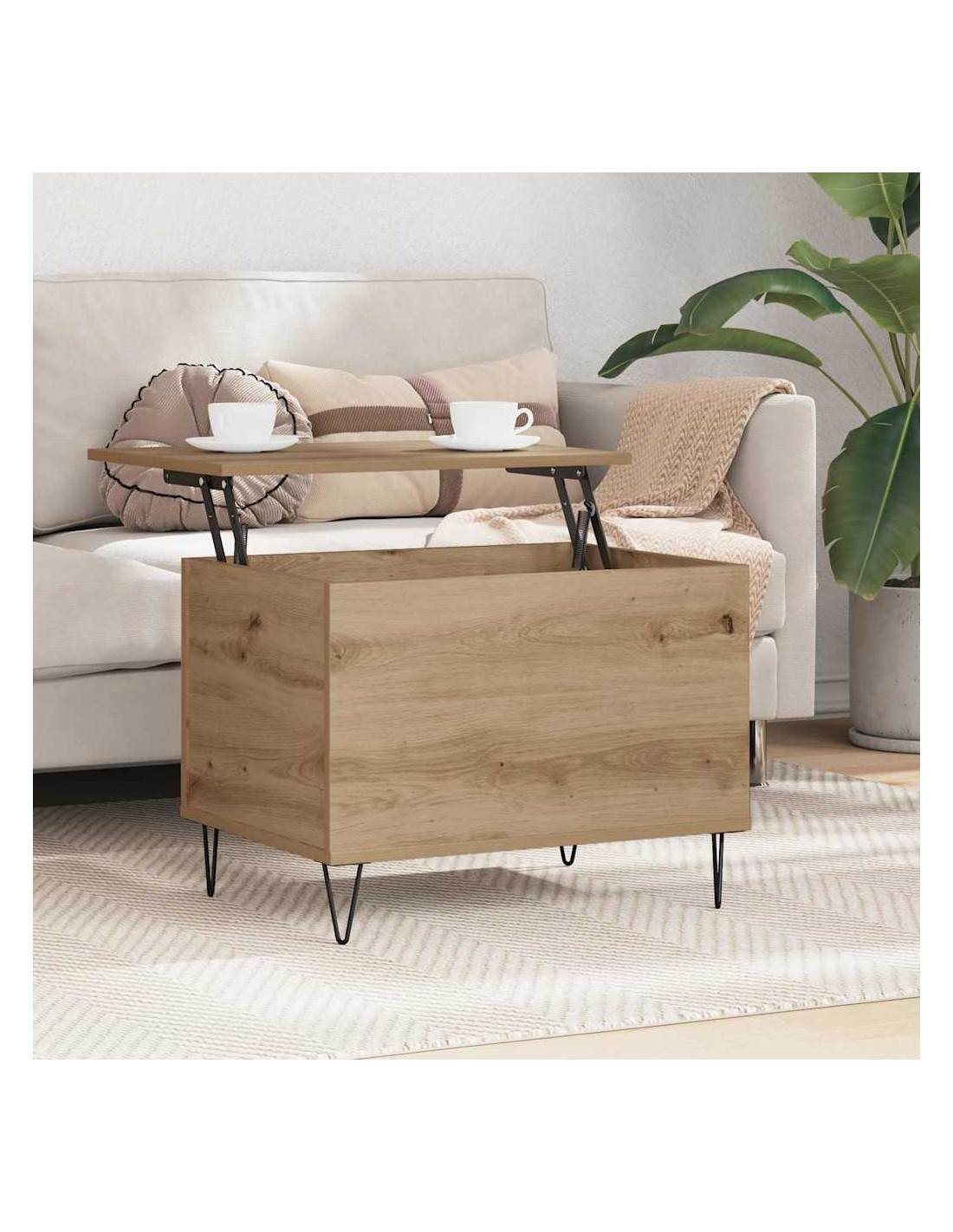 - Spazio di archiviazione ampio: Sotto il piano del tavolo c'è un gran spazio per riporre gli oggetti essenziali. L'area interna è grande e senza partizioni, rendendo facile organizzare coperte, libri o accessori tecnologici. È una soluzione pratica per riordinare il disordine quotidiano, migliorando l'aspetto e la funzionalità dello spazio.