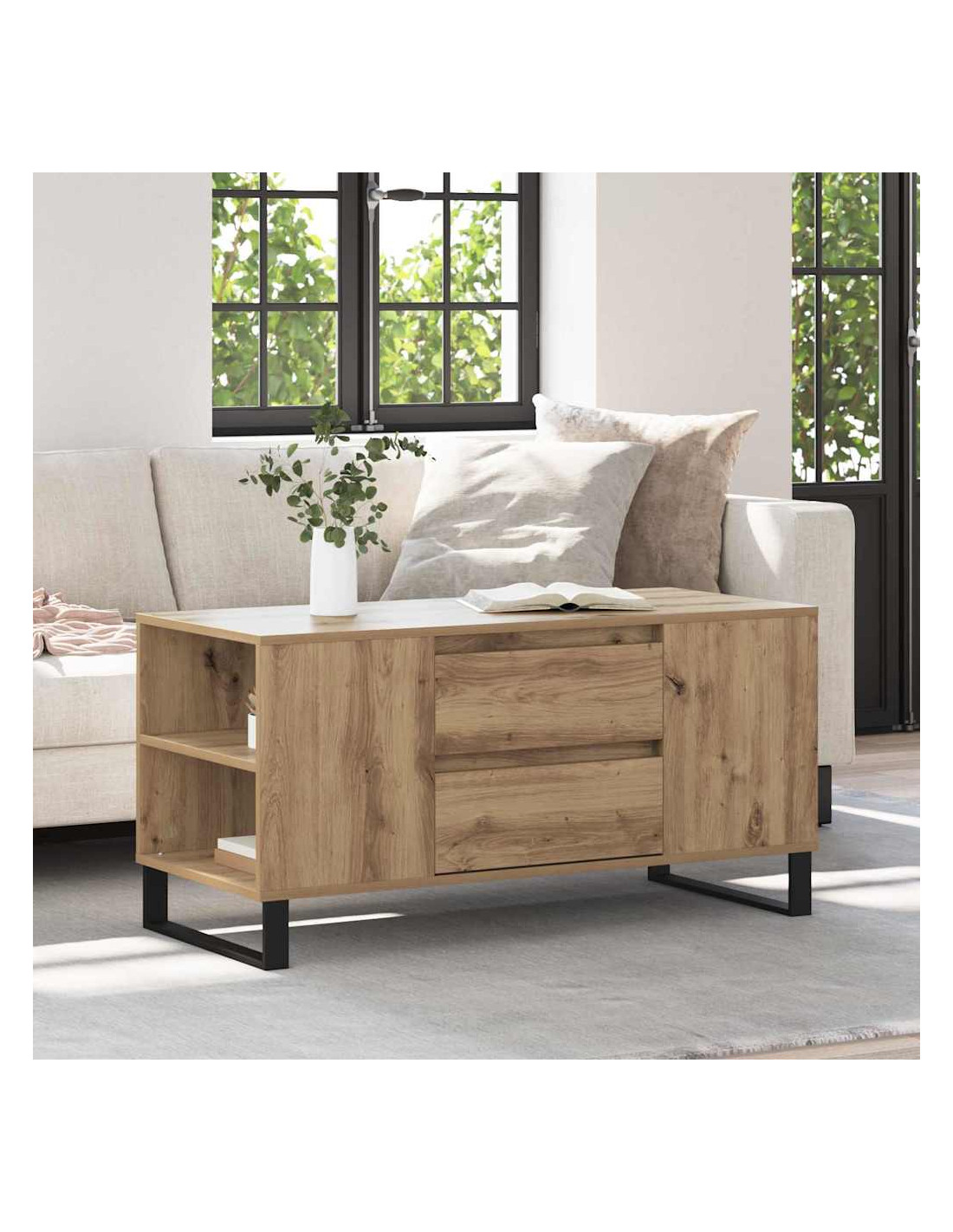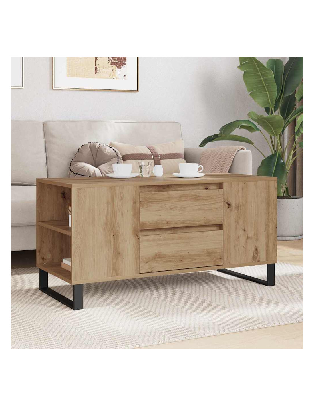 Questo Tavolino da Caffè Contemporaneo è il protagonista ideale per qualsiasi soggiorno moderno. Con linee pulite e un design minimalista, porta un tocco di eleganza nella tua casa. La sua costruzione in legno ingegnerizzato garantisce resistenza e presenza duratura nel tuo ambiente. Facile da combinare con ogni stile di arredamento, offre funzionalità e un look straordinario che arricchisce l'estetica della tua casa.