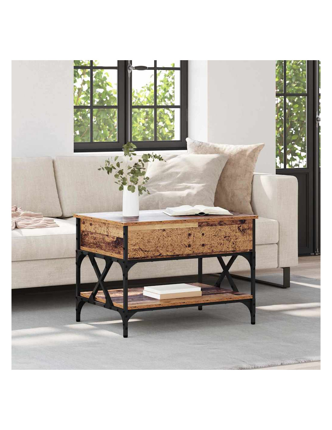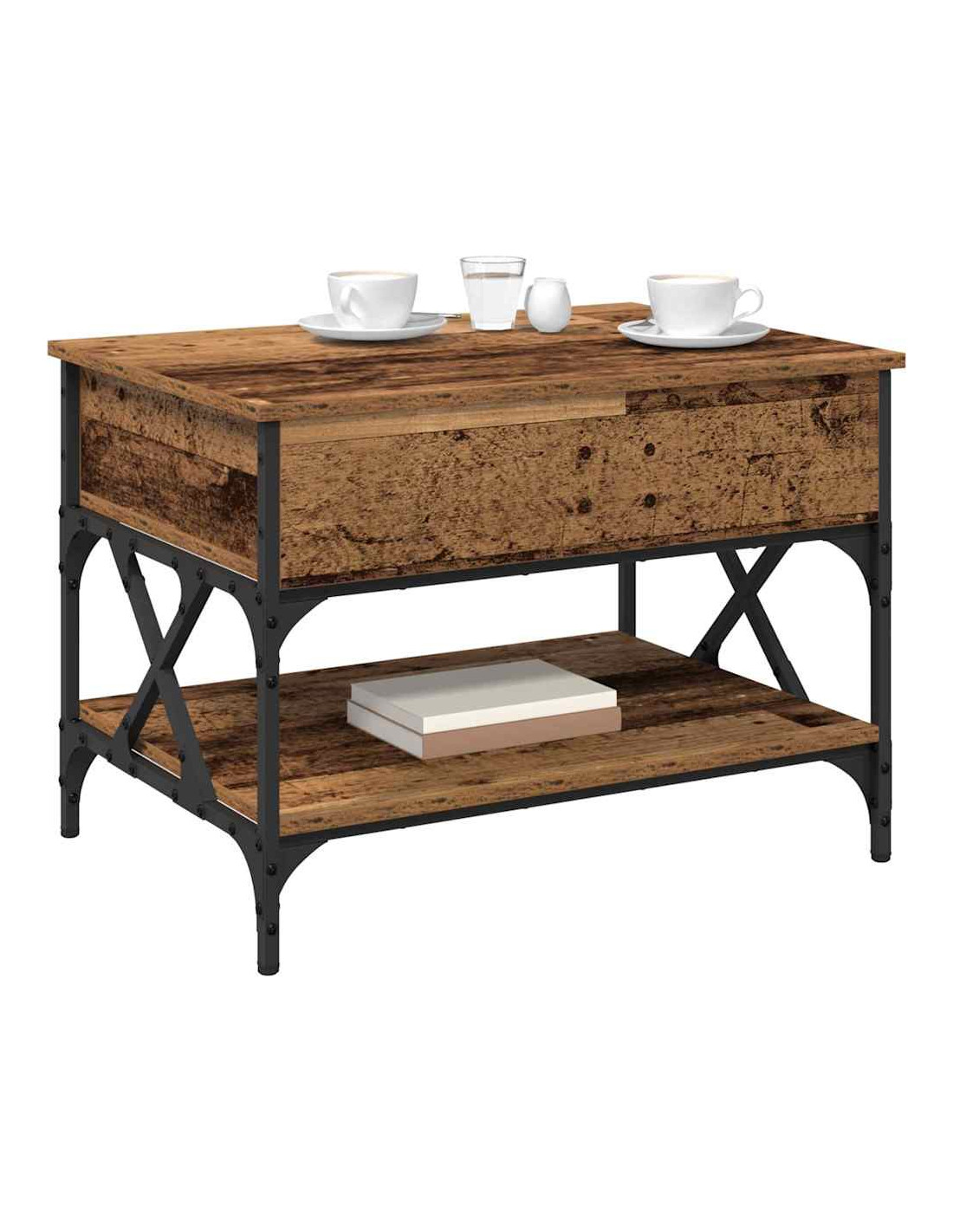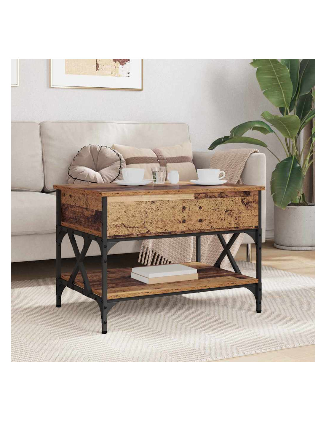 Questo tavolino da caffè unisce stile e funzionalità, catturando il fascino urbano del design industriale. È realizzato principalmente in legno ingegnerizzato e ha un piano sollevabile che rende facili le transizioni da tavolo casual a spazio di lavoro o da pranzo. Combina metallo e legno in modo efficiente, diventando il pezzo centrale dei soggiorni, attrattivo e pratico.