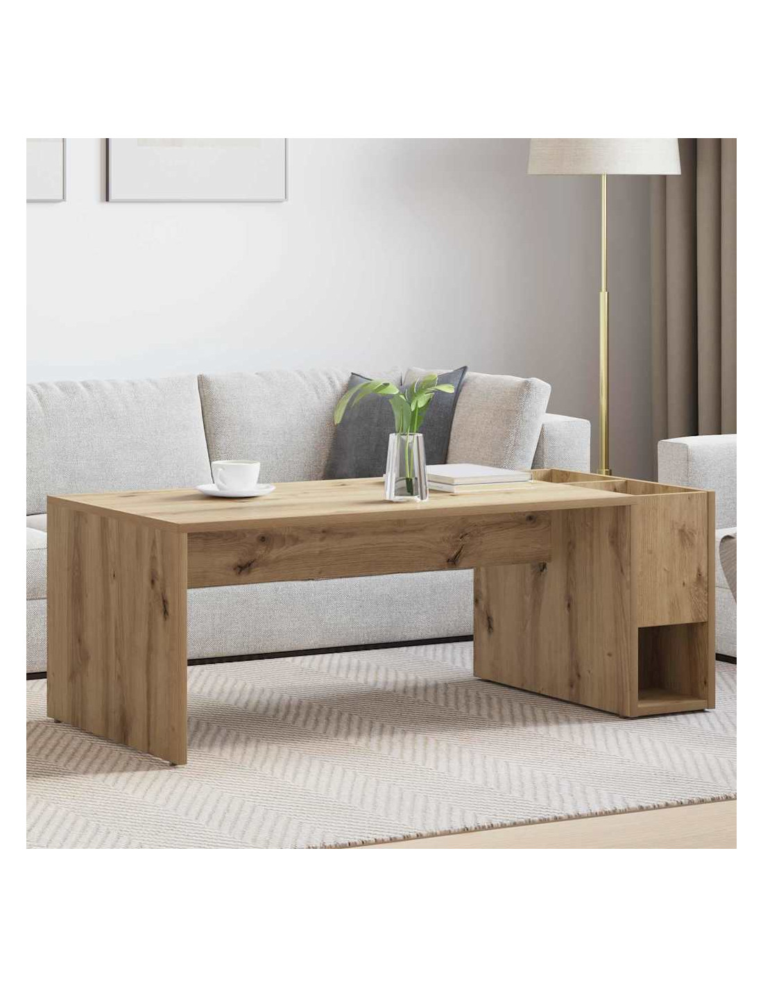 - Design con ampio spazio di archiviazione Grazie a una struttura ben progettata, il tavolo offre tanto spazio di stoccaggio per tenere in ordine il soggiorno. Usa i compartimenti per sistemare riviste, telecomandi o souvenir, e rendi il tuo spazio più organizzato.