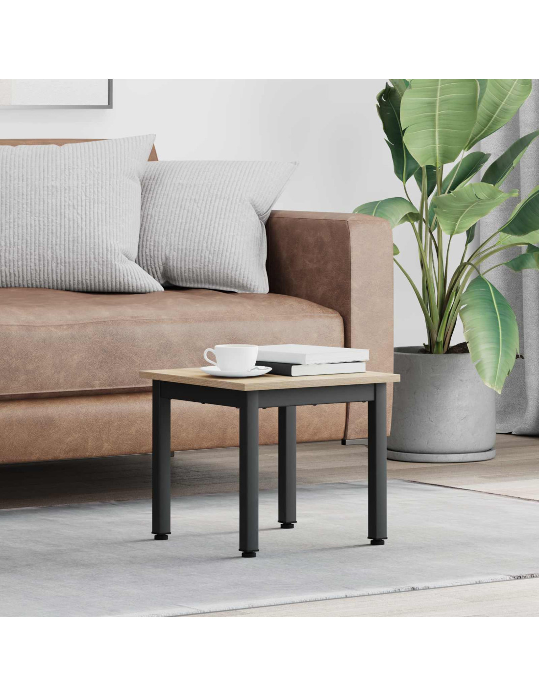- Costruzione solida: Questo tavolino è fatto di legno ingegnerizzato e metallo, garantendo una base sicura per ciò che ti serve. La combinazione di questi materiali offre supporto e stabilità, perfetti per l'uso quotidiano e le famiglie moderne. Questo pezzo è progettato per durare, resiste al passare del tempo e all'uso quotidiano senza perdere qualità.