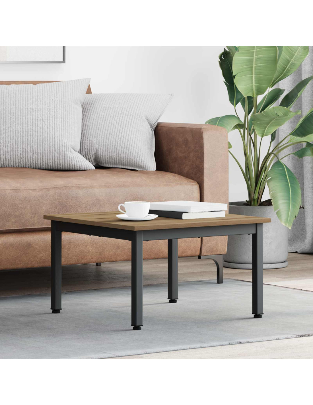 - Costruzione solida: Questo tavolino è fatto di legno ingegnerizzato e metallo, garantendo una base sicura per ciò che ti serve. La combinazione di questi materiali offre supporto e stabilità, perfetti per l'uso quotidiano e le famiglie moderne. Questo pezzo è progettato per durare, resiste al passare del tempo e all'uso quotidiano senza perdere qualità.