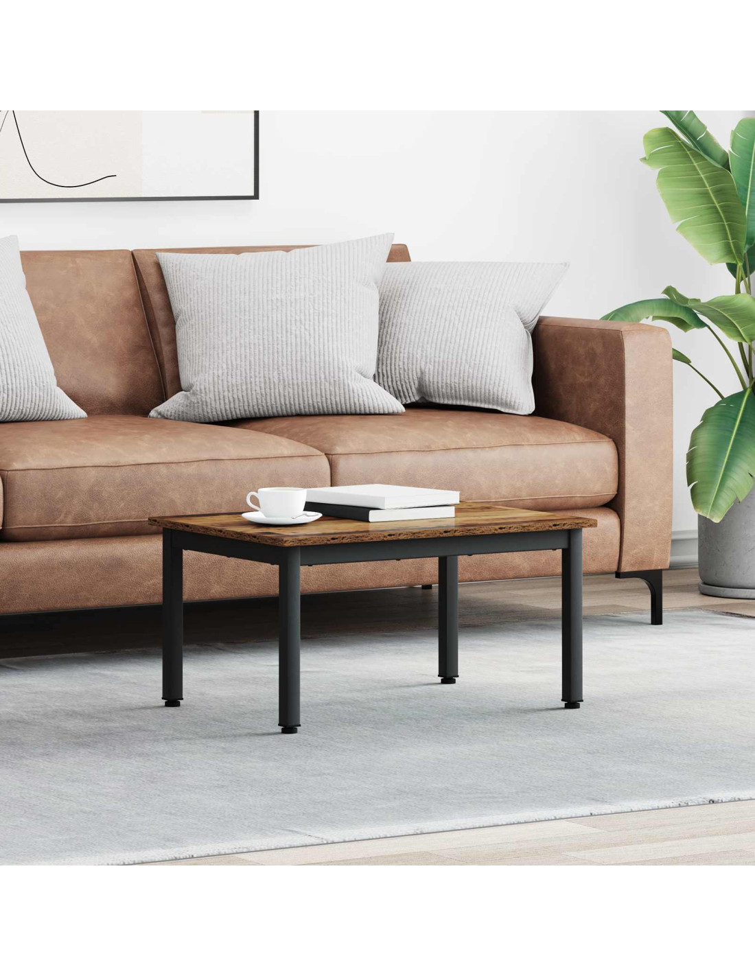 - Costruzione solida: Questo tavolino è fatto di legno ingegnerizzato e metallo, garantendo una base sicura per ciò che ti serve. La combinazione di questi materiali offre supporto e stabilità, perfetti per l'uso quotidiano e le famiglie moderne. Questo pezzo è progettato per durare, resiste al passare del tempo e all'uso quotidiano senza perdere qualità.