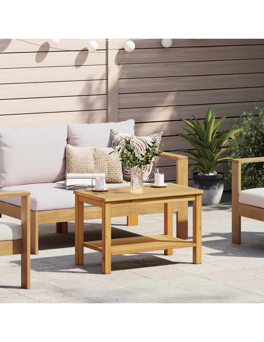 Questo Tavolo Laterale da Giardino è fatto in legno massello di acacia. È una soluzione versatile per ogni spazio, unendo durata e fascino rustico. Lo stile solido porta un tocco naturale a giardini, patio, cortili e anche interni, mentre il design elegante si adatta sia a un arredamento moderno sia tradizionale. È perfetto per chi vuole aggiungere un po'di eleganza ai propri ambienti, sostenendo bevande, libri e decorazioni con un aspetto robusto e alla moda.