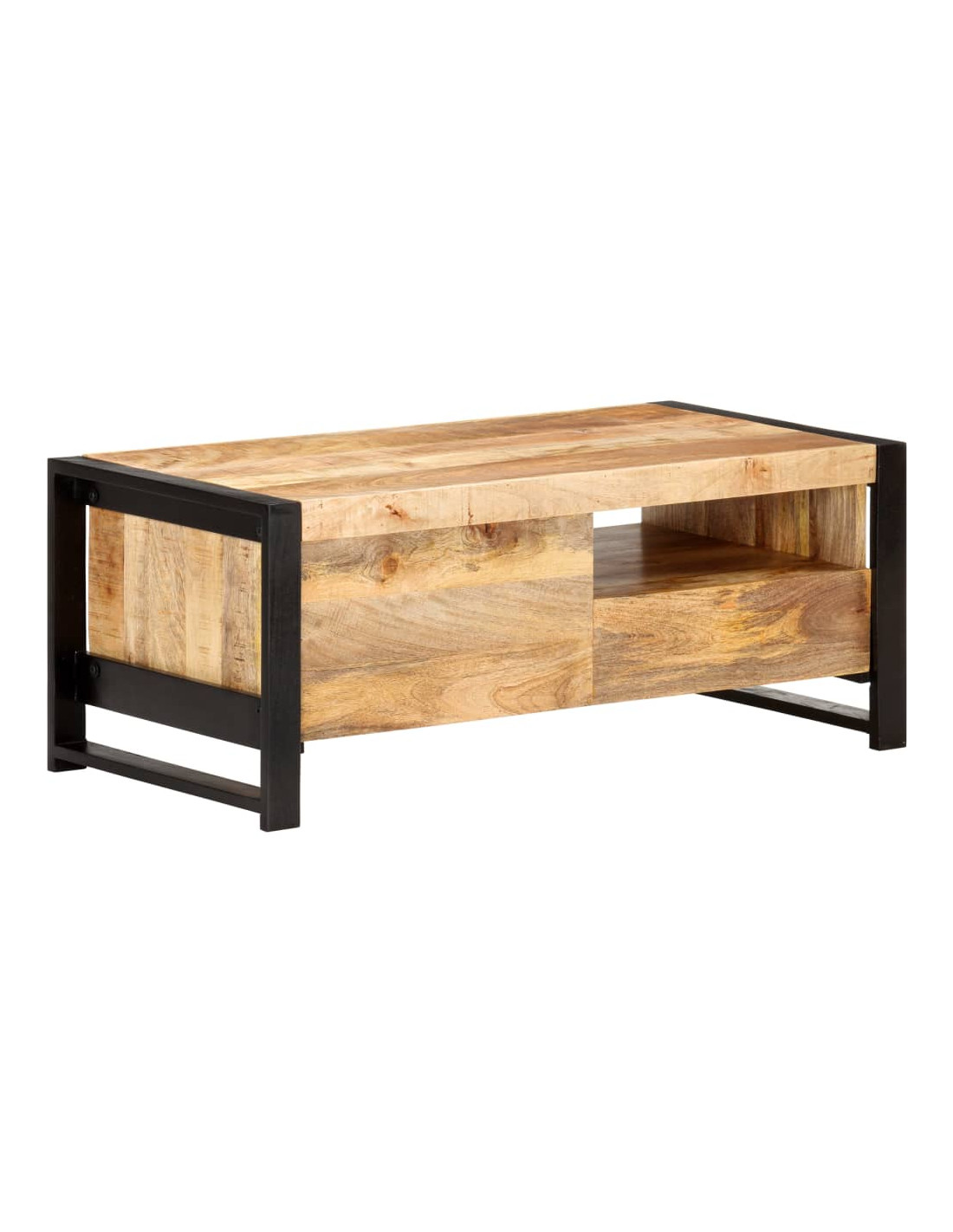 Il tavolino laterale è realizzato in legno massello di mango grezzo, un legno duro tropicale con la forza di sopportare il peso. Inoltre resiste all'usura del tempo, essendo stabile e durevole. Il ferro con rivestimento in polvere nera fornisce una maggiore stabilità a questo mobile. La lavorazione artigianale e le belle venature del legno rendono ogni mobile unico e leggermente diverso dagli altri. Questo tavolino laterale dispone anche di 1 anta, 1 cassetto e 1 mensola, fornendo ampio spazio di stoccaggio per mantenere i vostri oggetti essenziali organizzati e a portata di mano.