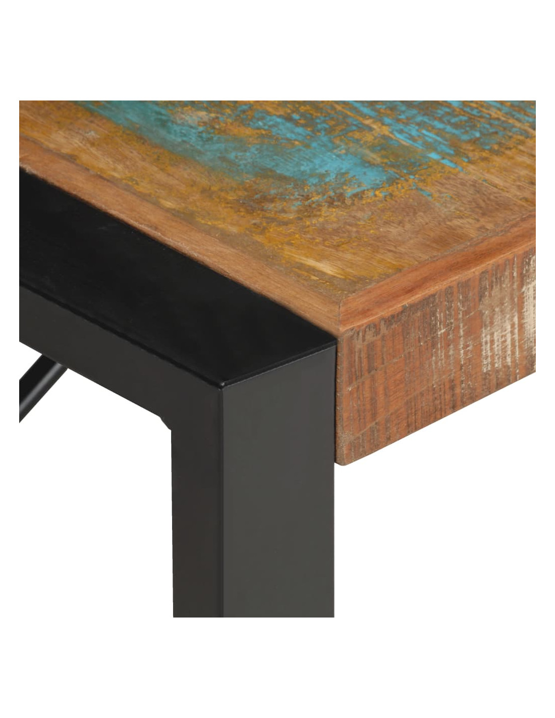 Questo tavolino è realizzato in legno massello di recupero, ricavato da travetti, pavimenti e travi di supporto di vecchi edifici demoliti. Inoltre, può essere costituito da diversi tipi di legno come teak, legno duro, legno tropicale, legno di mango, ecc. Ciò significa che il legno di recupero mantiene le caratteristiche di questi diversi tipi di legno. Il legno di recupero è già invecchiato, stagionato ed essiccato. Quindi, non si restringe o si piega. Le robuste gambe in acciaio verniciato a polvere aggiungono ulteriore stabilità al tavolo.