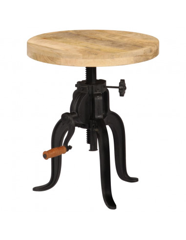 Questo tavolino da salotto è realizzato in legno massello di mango, un legno duro con dense venature. Il mango grezzo non solo è abbastanza robusto da sopportare pesi gravosi, ma resiste anche all'usura del tempo. Di conseguenza, questo tavolino da salotto retrò è altamente stabile, resistente e accattivante. Inoltre, le gambe in ghisa verniciate a polvere gli conferiscono un notevole grado di robustezza. Questo tavolino in stile anticato è regolabile in altezza da 45 a 62 cm.