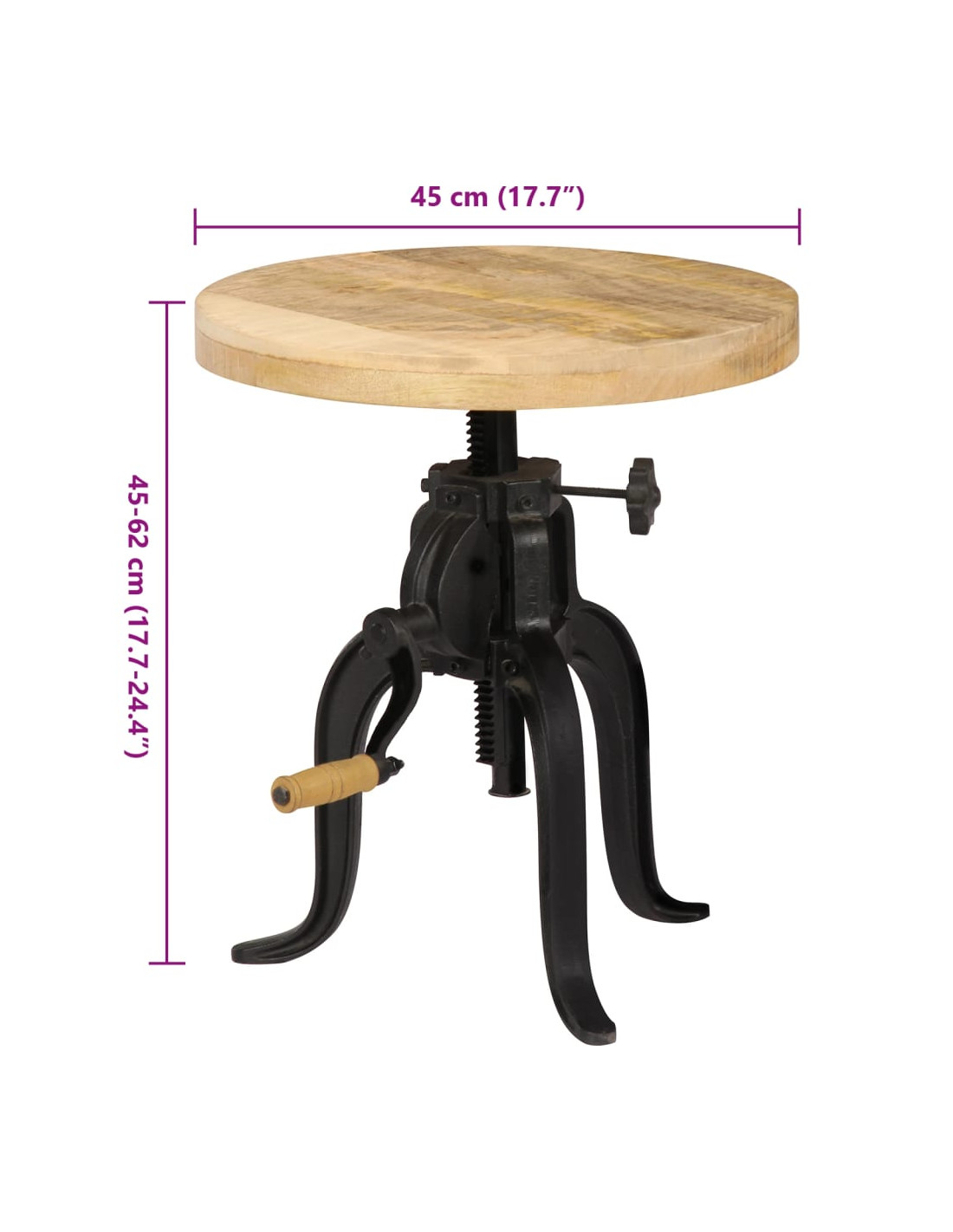 - Materiale: Legno massello di mango e ghisa verniciata a polvere