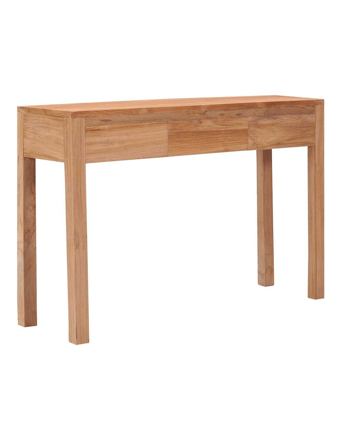 Il tavolo da ingresso è realizzato in legno massello di teak, che lo rende molto durevole e resistente. Il piano robusto offre spazio per riporre cestini di frutta, cornici per foto o altri oggetti decorativi. Questo prodotto è facile da montare.