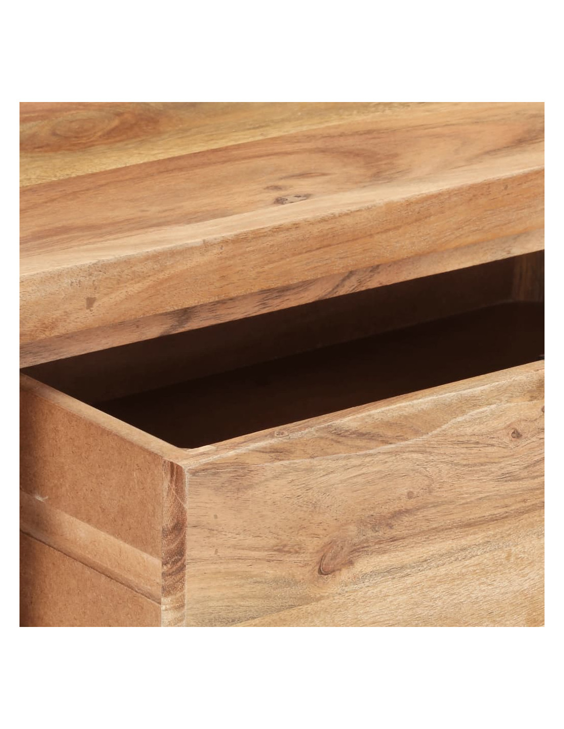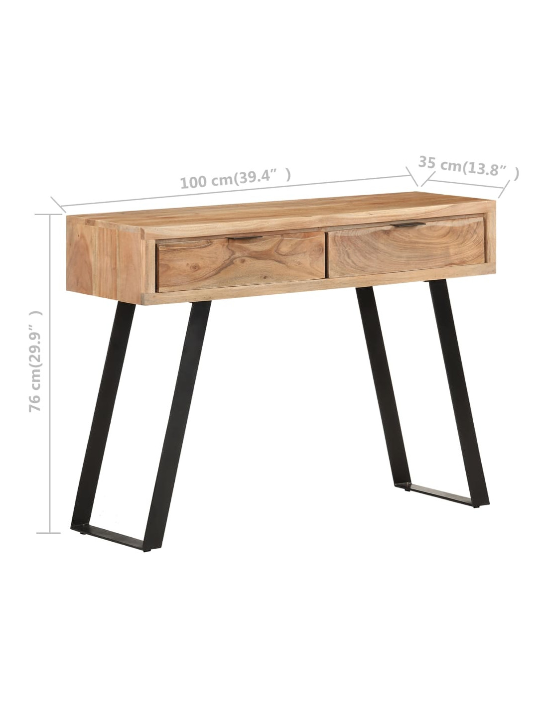 Il mobile da ingresso è realizzato artigianalmente in legno massello di acacia, un legno duro con dense venature, che lo rende solido e durevole. Il telaio in acciaio garantisce inoltre una maggiore stabilità. Inoltre, i bordi vivi del legno seguono la forma naturale dell'albero, aumentando la bellezza del mobile in legno. I 2 cassetti inclusi forniscono inoltre lo spazio necessario per riporre i vostri oggetti personali e tenerli così a portata di mano.
