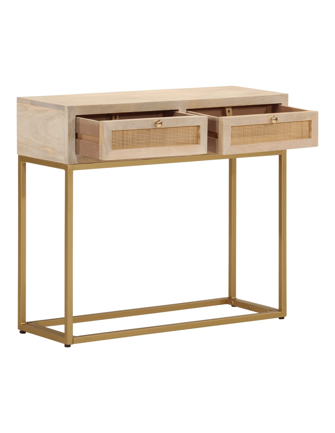 Tavolo Consolle 90x30x76 cm in Legno Massello di Mango e Ferro
