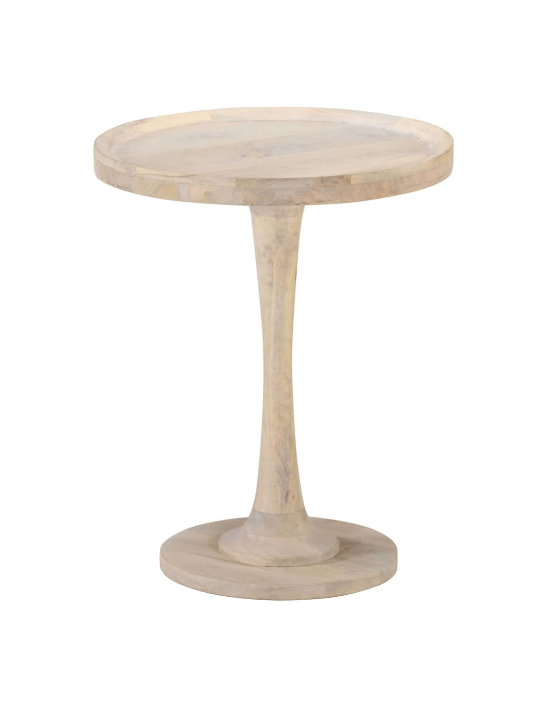 Questo tavolino di servizio è realizzato a mano in legno massello di mango con finitura sbiancata naturale. Il mango è un legno tropicale in grado di sopportare pesi elevati e di resistere al meglio all'usura del tempo, ed è un materiale che rende il prodotto solido e resistente. La lavorazione artigianale e le bellissime venature del legno rendono ogni mobile unico e leggermente diverso da tutti gli altri. Il robusto piano superiore del tavolo è perfetto per esporre oggetti decorativi, foto o piante. Questo tavolino può anche essere utilizzato come tavolino da caffè, base per telefono, tavolino da divano, etc.