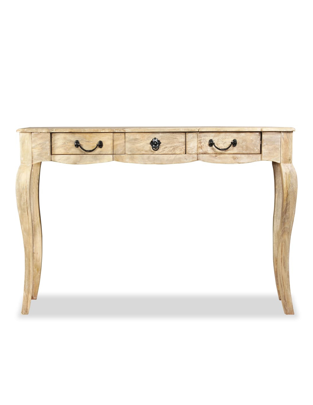 Questo tavolo consolle in legno rustico, è la soluzione ideale se state cercando un mobile in stile rustico francese. Il tavolino è realizzato in legno massello di mango che è solido, stabile, resistente e bello e la sua fattura artigianale si aggiunge al suo spettacolare stile retrò.