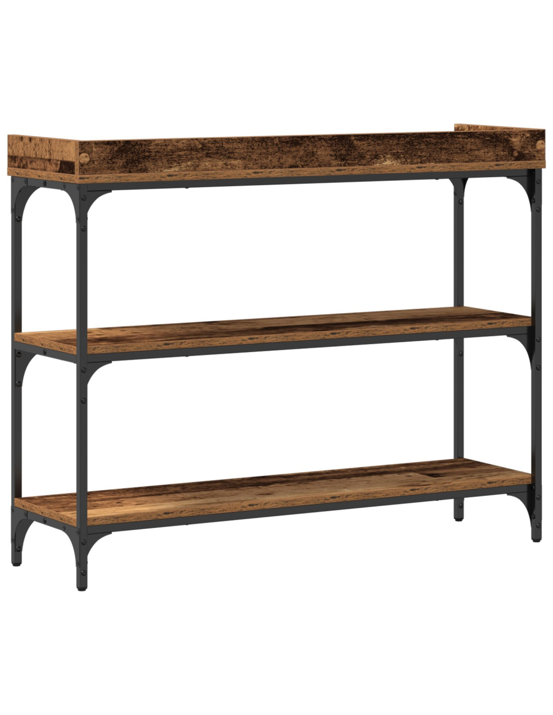 - Componenti Inclusi: Il tavolo ha una superficie rettangolare perfetta per tanti usi decorativi e pratici. I ripiani in legno danno tanto spazio per libri, cornici e oggetti decorativi. Il telaio in acciaio aggiunge solidità, portando un vibe industriale. Puoi posizionarlo dove vuoi e non ha bisogno di supporto a parete.